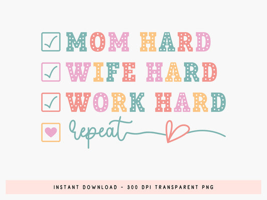 Mom Hard Wife Hard Work Hard Repeat PNG Sublimation