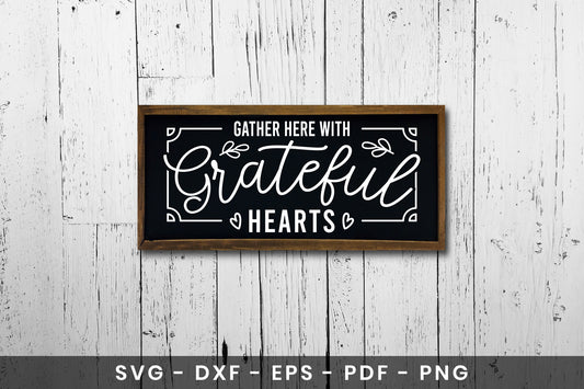 Grateful Hearts Gather Here, Thanksgiving Sign SVG