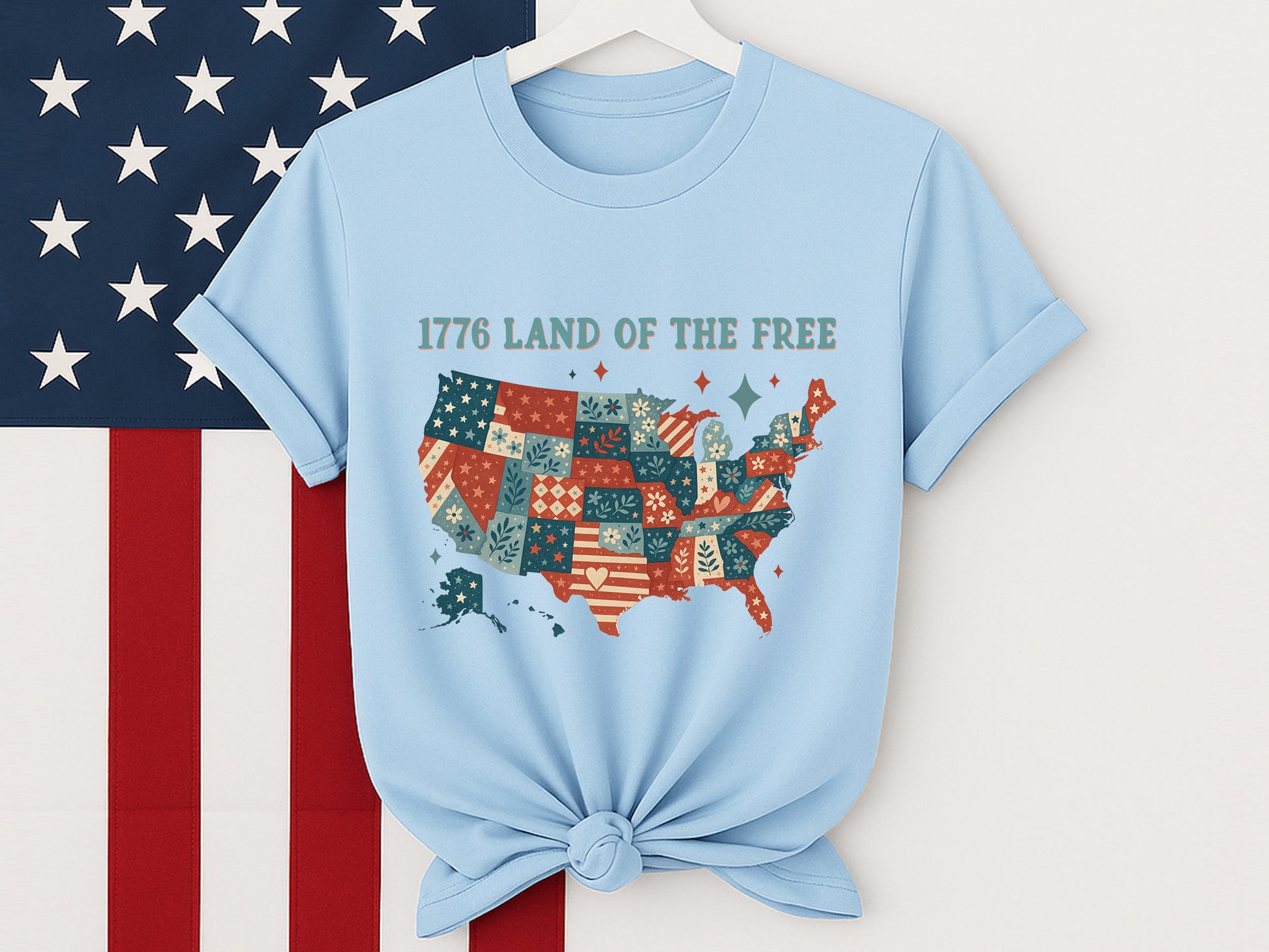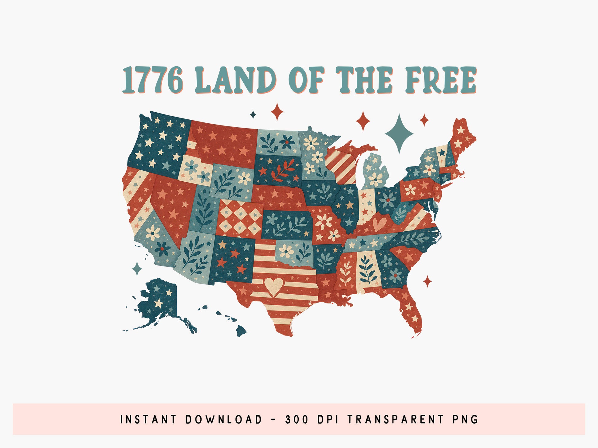 This vibrant 1776 Land of the Free - 4th of July Map Sublimation design is perfect for all your patriotic crafting needs. It includes high-resolution 300 DPI PNG file with a transparent background that can be used for making t-shirts, mugs, tote bags, and so much more. Whether you’re gearing up for Independence Day parties, family get-togethers, or even projects for your small business, this 4th of July Map Sublimation adds that Americana touch to any creation. Plus, it's compatible with most design software and sublimation printers, ensuring you get vibrant print. With its classic red, white, and blue color scheme and an eye-catching map illustration, our 4th of July Map Sublimation will make a statement on any creation. Browse now!