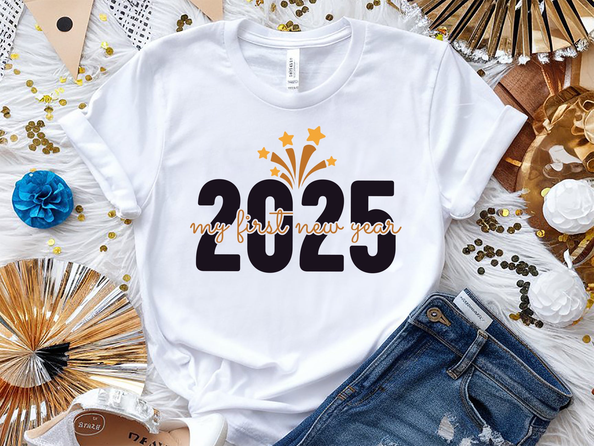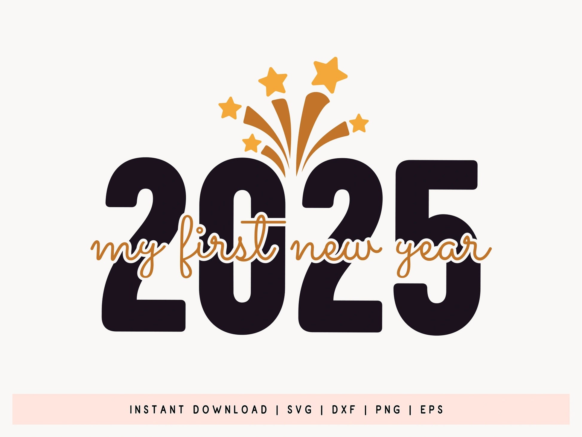 Take a look at our 2025 My First New Year SVG Design, a delightful graphic perfect for commemorating your little one’s first New Year celebration, ideal for creating adorable onesies, bibs, or festive decorations. With charming typography and playful graphics, this New Year design adds a touch of joy to your celebrations. Compatible with Cricut Design Space, Silhouette Cameo, and other cutting machines, it’s easy to personalize for unique keepsakes and memorable photo opportunities. Make this celebration a cherished memory that you and your family will treasure for years to come with "2025 My First New Year" design! Download now.