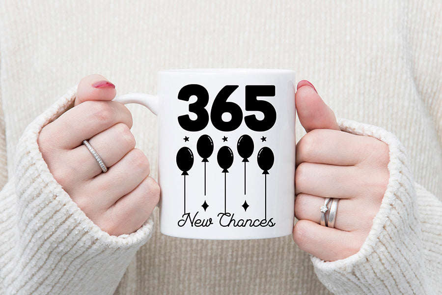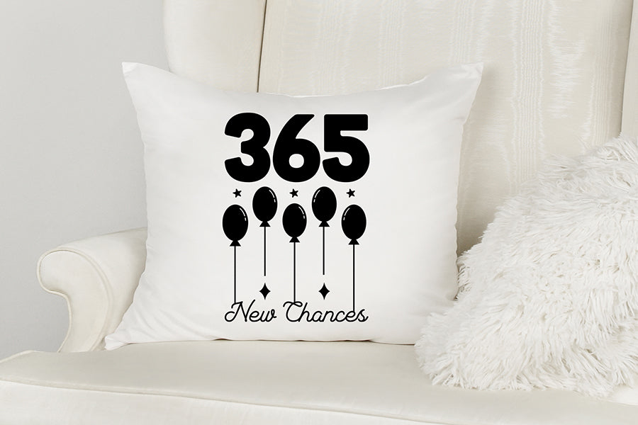 Make your new years eve products and gifts stand out for celebrating the arrival of the New Year. This adorable 365 New Chances SVG New Years T Shirt design is ideal for creating New Year's Eve crafts, gifts and decorations! The design can be used for any physical items, such as t-shirts, mugs, tote bags, cards, hoodies, pillows, and much more!