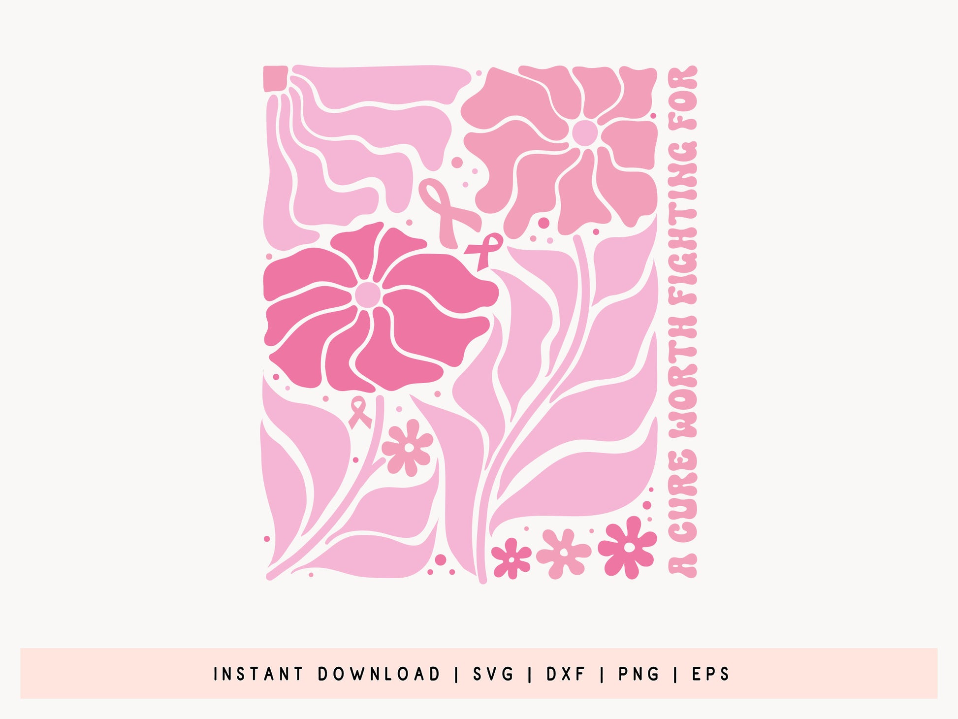 A Cure Worth Fighting For - Boho Floral Breast Cancer SVG