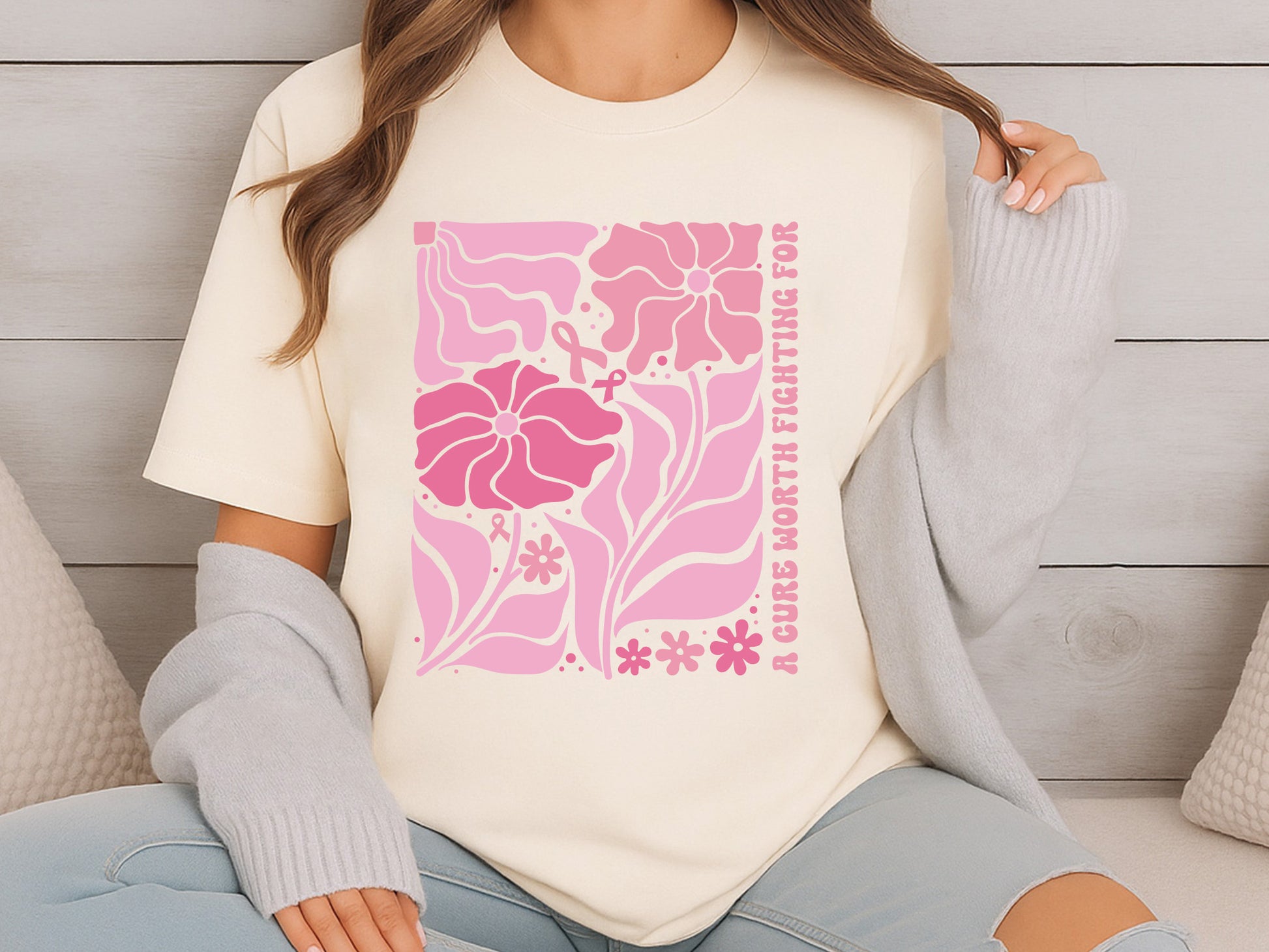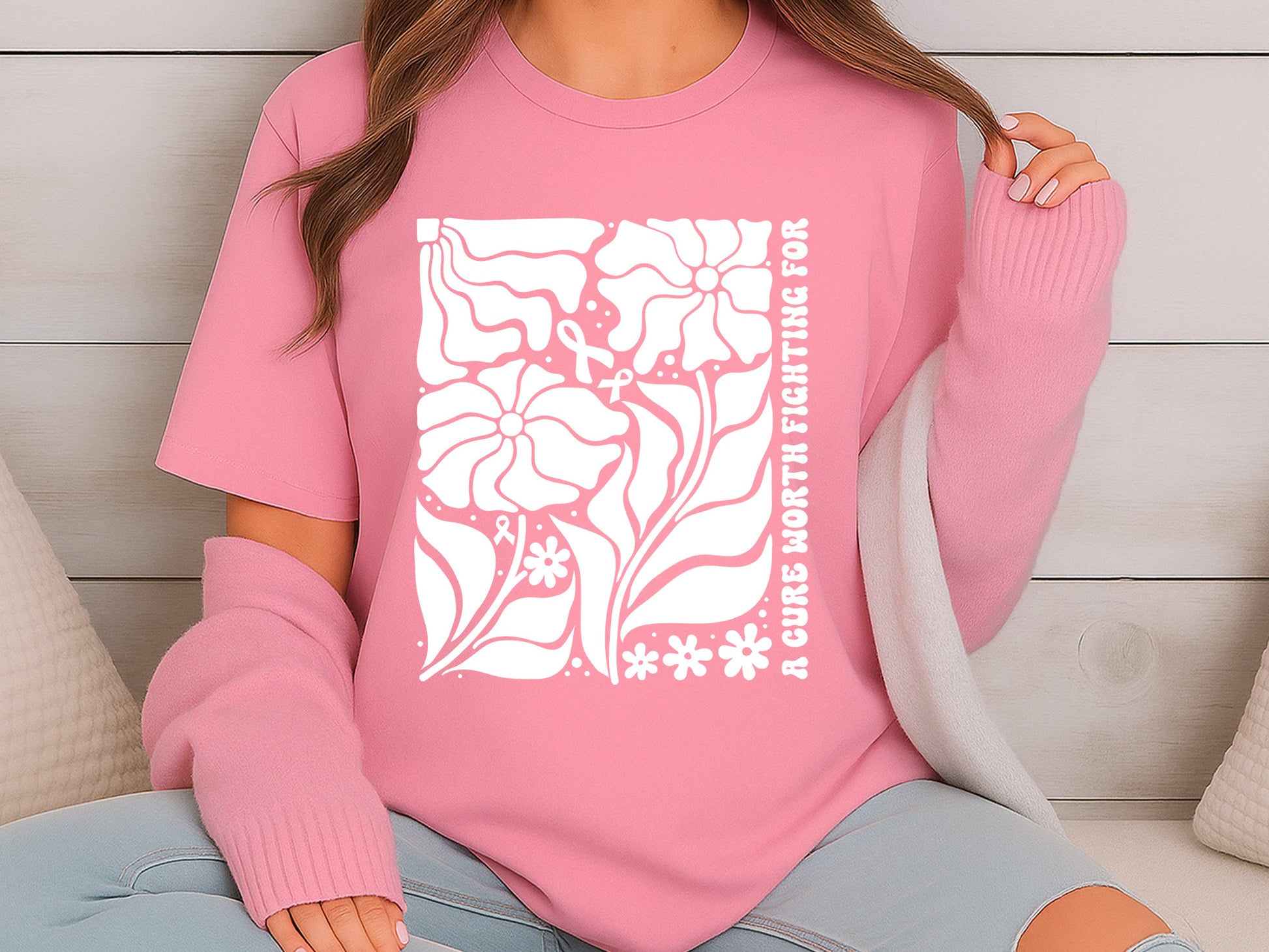 Discover our hand drawn A Cure Worth Fighting For - Boho Floral Breast Cancer SVG. If you're making shirts, tote bags, decals, or thoughtful gifts, the Boho Floral Breast Cancer SVG adds a heartfelt touch of hope and awareness to your creations. It's perfect for Breast Cancer Awareness Month or any fundraising events. This design is available in SVG, DXF, EPS, and PNG formats, ensuring compatibility with Cricut, Silhouette, and other cutting machines. With its delicate floral elements and bold lettering, our Boho Floral Breast Cancer SVG is both striking and meaningful. Create with intention and help spread awareness with this unique design that aimed at inspiring strength, love, and community support.