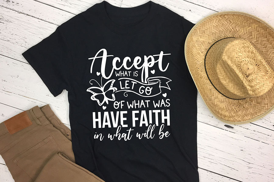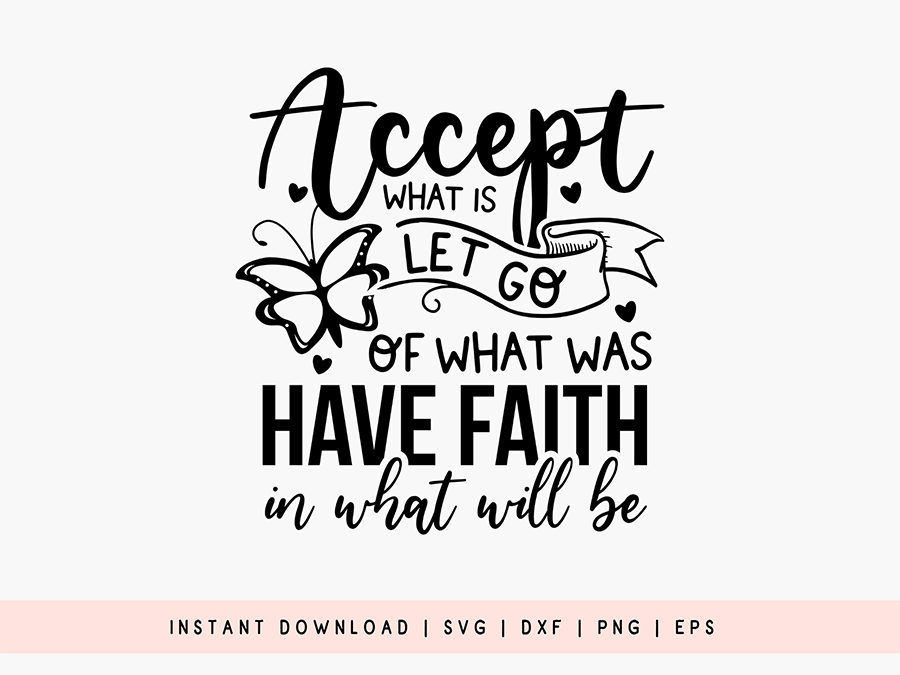 Introducing the "Accept What is Let Go of What was Have Faith in What will be - Butterfly SVG" design, carefully crafted to elevate any creative project. It features a beautiful butterfly graphic that will add a touch of natural beauty and grace to your artwork. Perfect for use in a variety of physical projects such as t-shirts, mugs, tote bags, signs and more. With its high-quality resolution and fully compatible with various cutting software, our "Accept What is Let Go of What was Have Faith in What will be" design is a perfect addition. Download now and unleash your creativity with Butterfly SVG.
