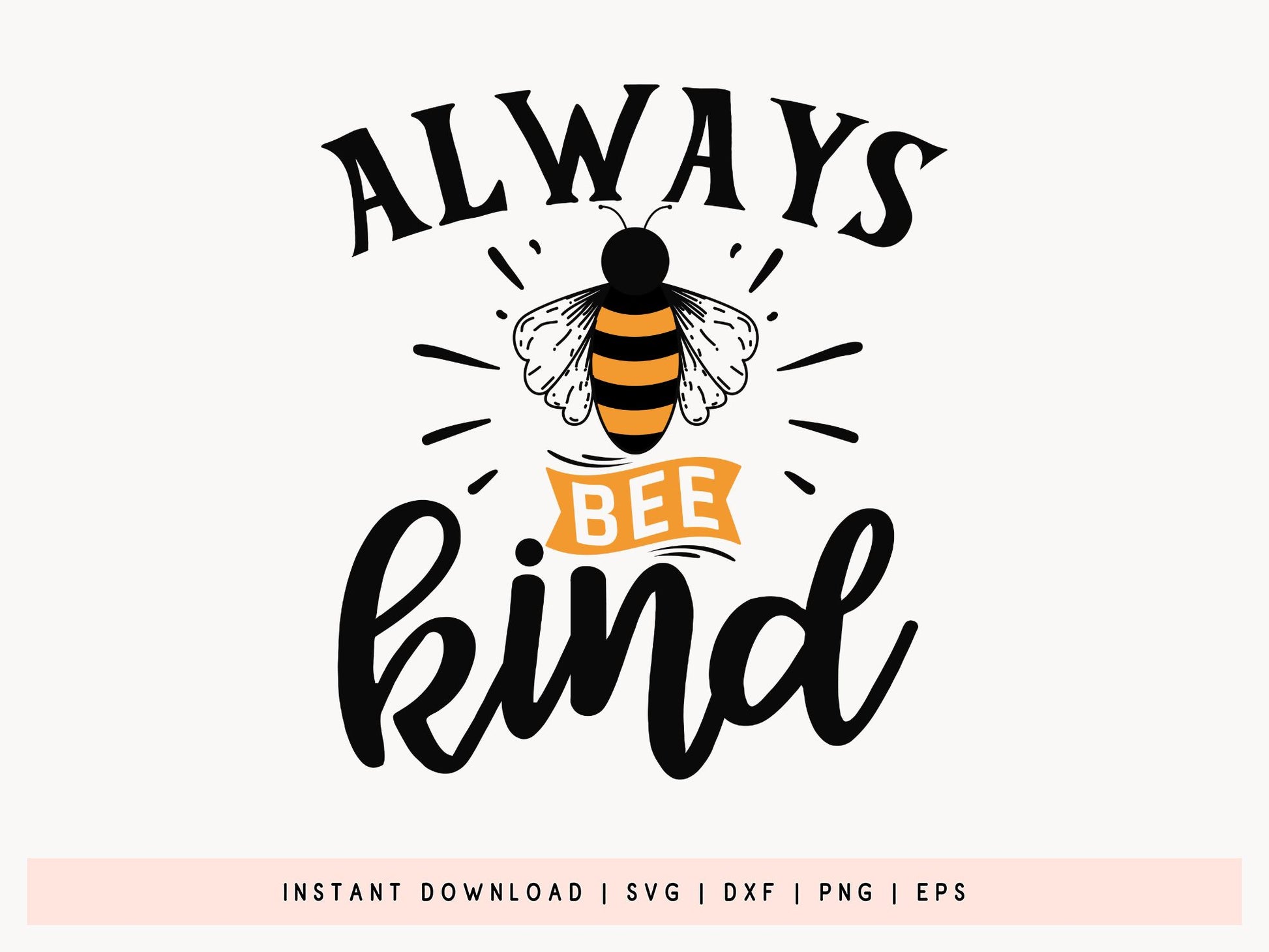 Explore our Always Bee Kind SVG design. It's perfect for all the DIY enthusiasts and crafters out there. This Bee SVG adds a cheerful touch to everything from shirts and tote bags to mugs and signs. Whether you're creating gifts or sprucing up your décor, the heartwarming message of kindness combined with an adorable bee graphic makes it suitable for all ages. This cut file is available in SVG, DXF, PNG, and EPS formats, so it works seamlessly with Cricut, Silhouette, and other cutting machines. Use this Bee SVG to create designs that spread kindness and brighten someone’s day. From t-shirts to wall art, Our Bee SVG is a charming addition to any collection.
