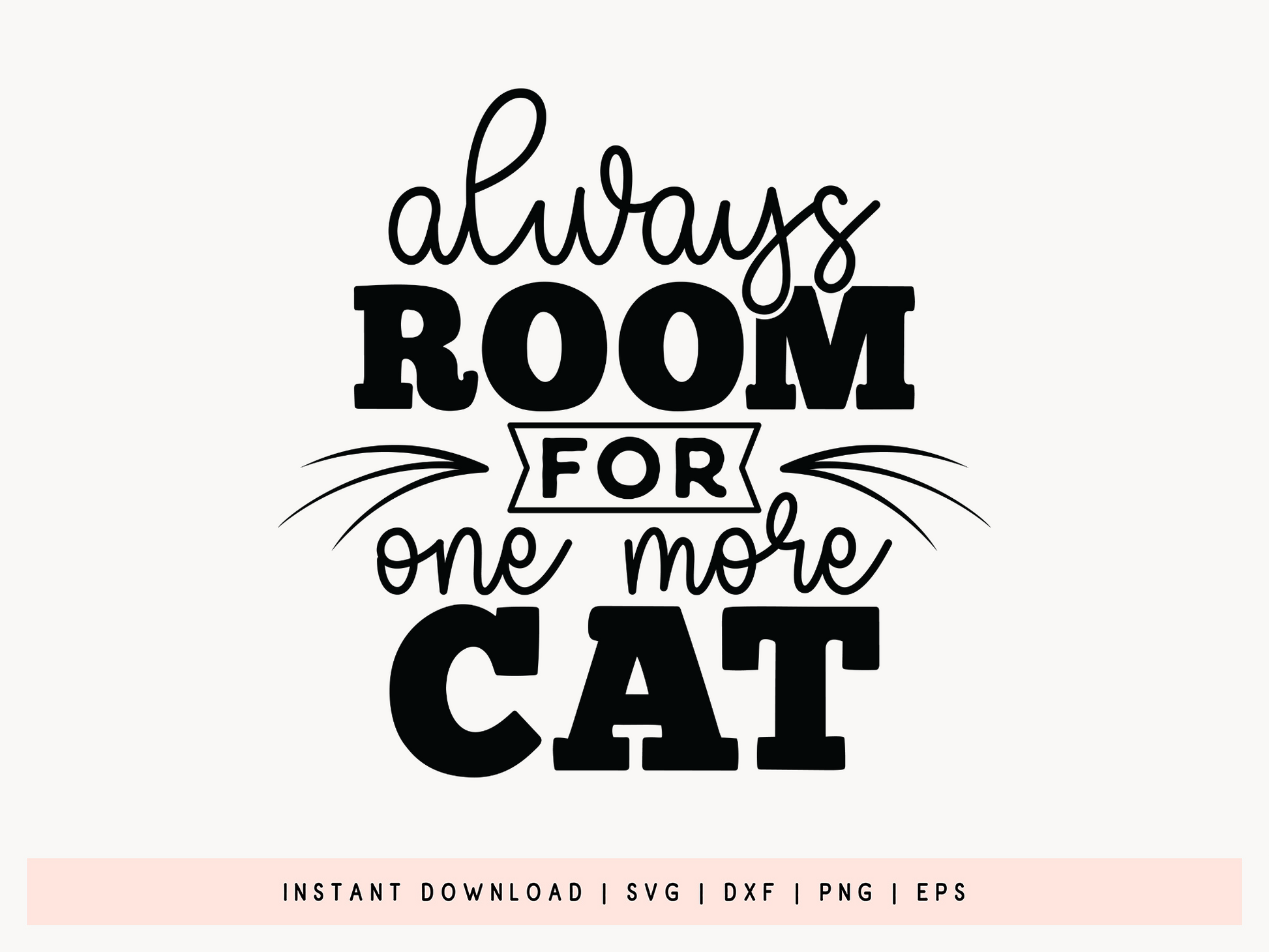 Check out our handmade Always Room for One More Cat SVG File. This lovely design is perfect for cat lovers and DIY enthusiasts looking to make crafts and diy projects. The Cat SVG File is completely customizable, making it ideal for crafting personalized signs, pillows, mugs, shirts, and more. Whether you're working on a project for yourself or putting together a thoughtful gift for a fellow cat lover, this versatile Cat SVG File adds a warm touch to everything. It's compatible with Cricut, Silhouette, and other cutting machines, and comes in SVG, DXF, PNG, and EPS formats for easy use. Show your passion for cats with this adorable Cat SVG File.
