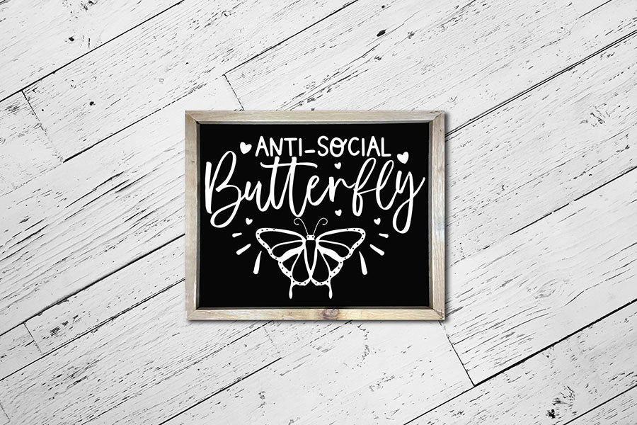 Discover our Anti Social Butterfly SVG Cut File, a unique and high-quality design for your upcoming crafting or designing projects. With its charming butterfly graphics, this cut file will add a touch of natural beauty to your projects or applications. You can print the file on physical items as gifts or sell the items you print such as t-shirts, mugs, tote bags, signs, cards and more. Purchase the Anti Social Butterfly SVG Cut File today and start crafting or designing projects.