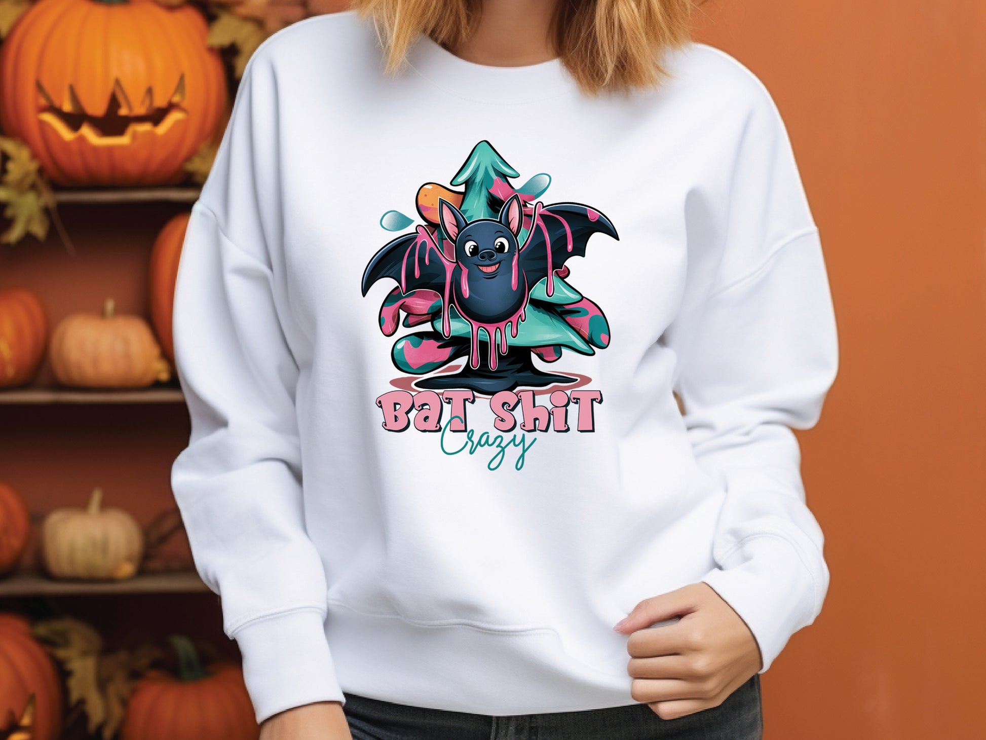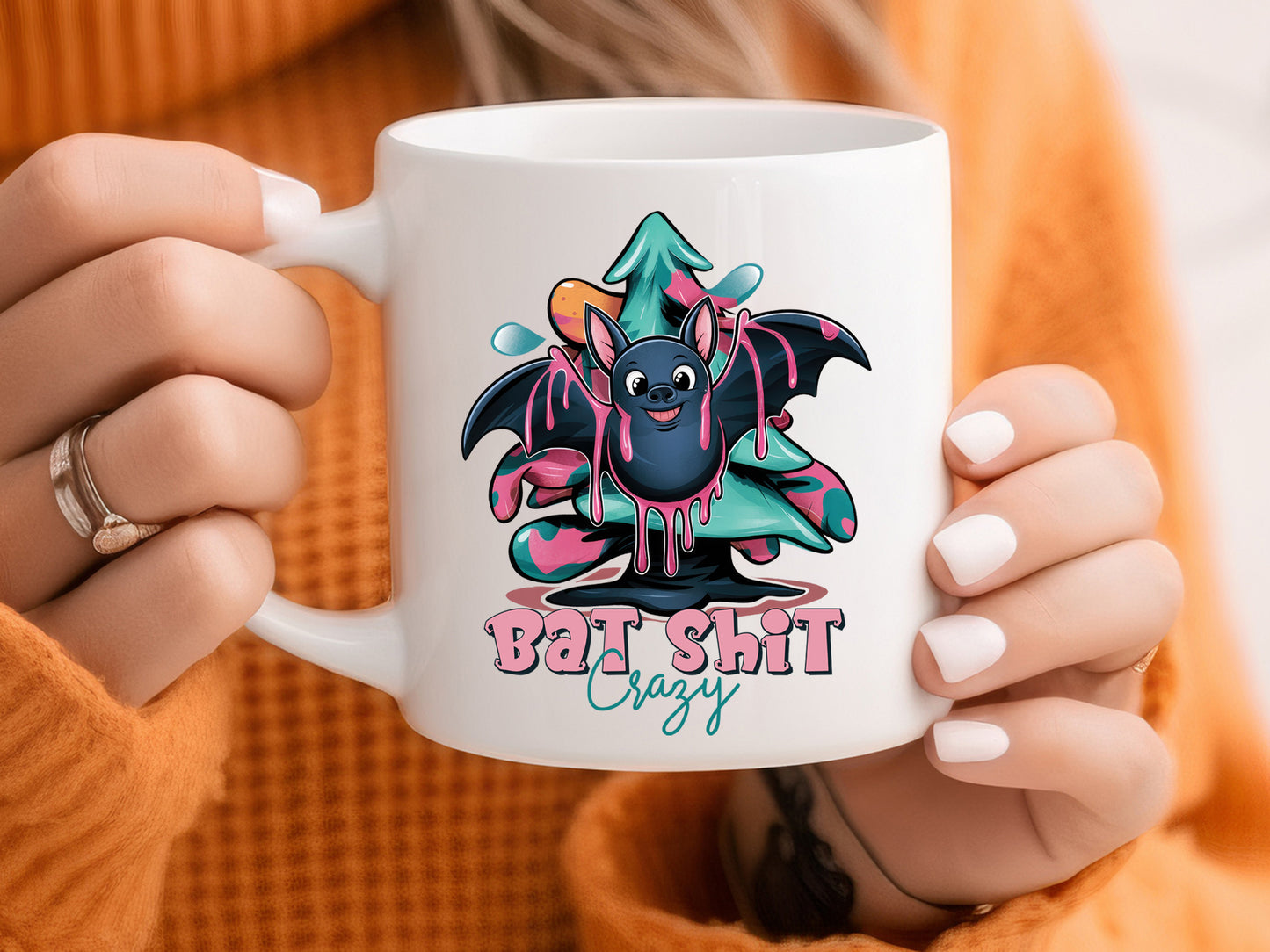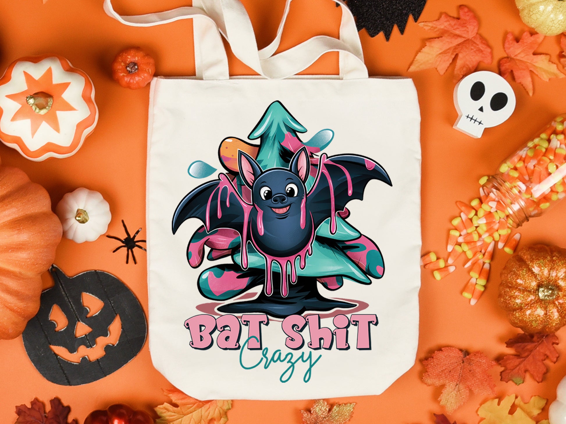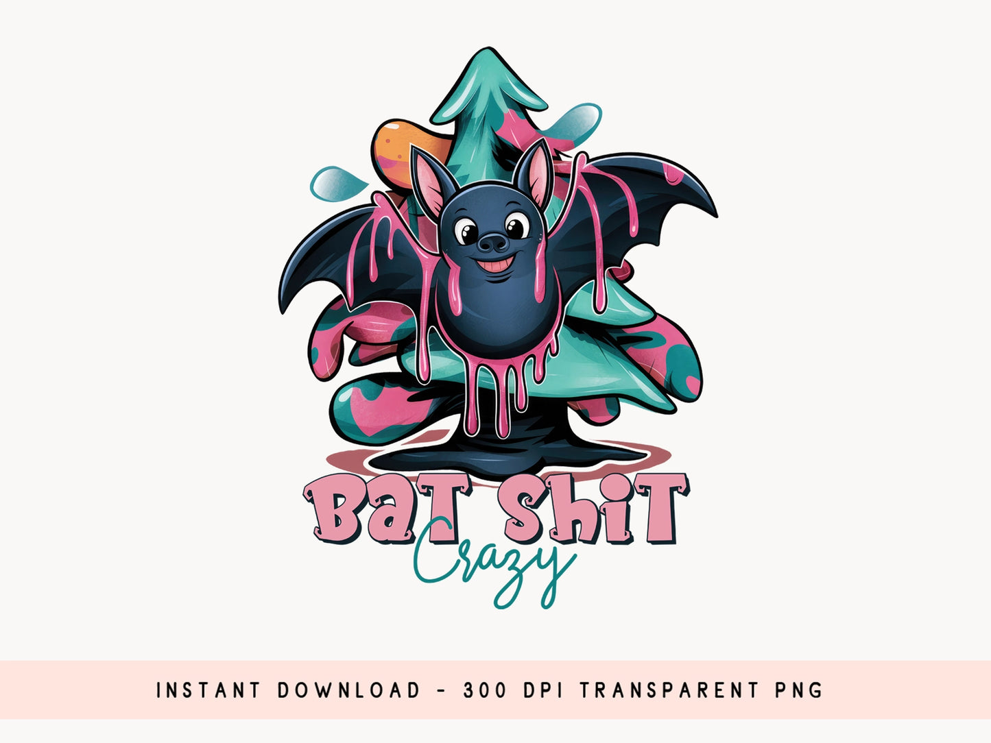 Buy our "Bat Shit Crazy - Halloween Pink Sublimation Design", a cheeky and vibrant design that adds a playful twist to your Halloween projects. It includes a playful cartoon bat with pink and purple dripping paint, hanging upside down from a colorful tree. The bat's mischievous expression and the vibrant color scheme create a fun and creative design. The phrase "Bat Shit Crazy" adds a touch of humor and fits perfectly with the bat's playful demeanor. You can make sweatshirts, mugs, tote bags, cards, gifts, t-shirts, and a lot more with this Halloween Pink Sublimation Design. Order now and add a unique touch to your designs.