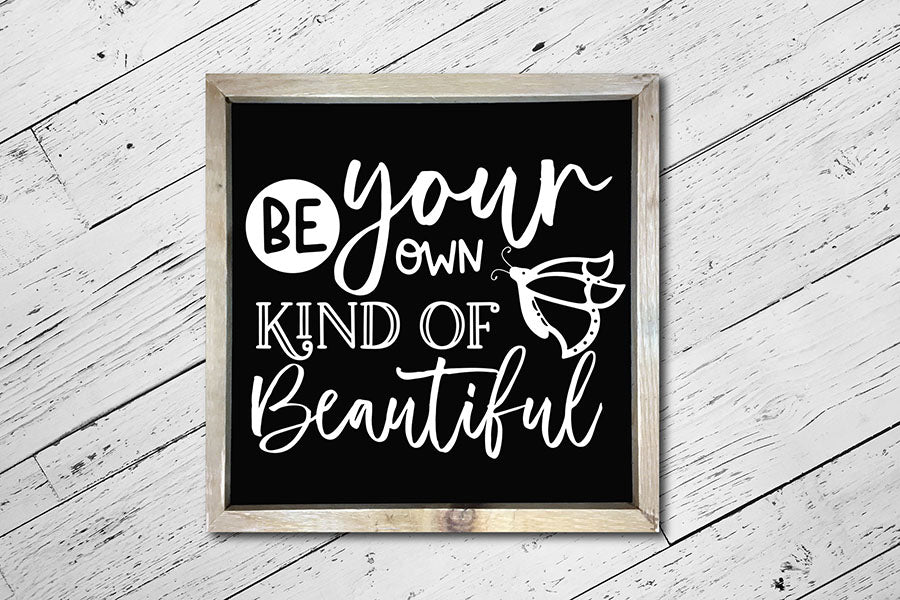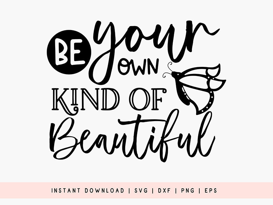 Grab our "Be Your Own Kind of Beautiful - Butterfly SVG Design"! This versatile design features a beautiful butterfly motif that will enhance your any project. Whether you are a DIY enthusiast, a creative professional, or simply looking to add a touch of beauty to your projects, this "Be Your Own Kind of Beautiful design" is perfect for a wide range of physical products such as t-shirts, mugs, tote bags, pillows, signs and more. Buy the Butterfly SVG Design now and show your creativity!