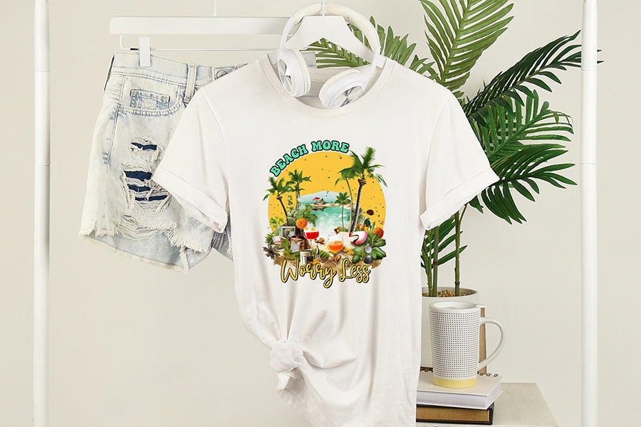 Capture the essence of summer bliss with our vibrant beach sublimation design. Perfect for adding a unique touch to your products. With this design, you can create t-shirts, mugs, tote bags, and more!