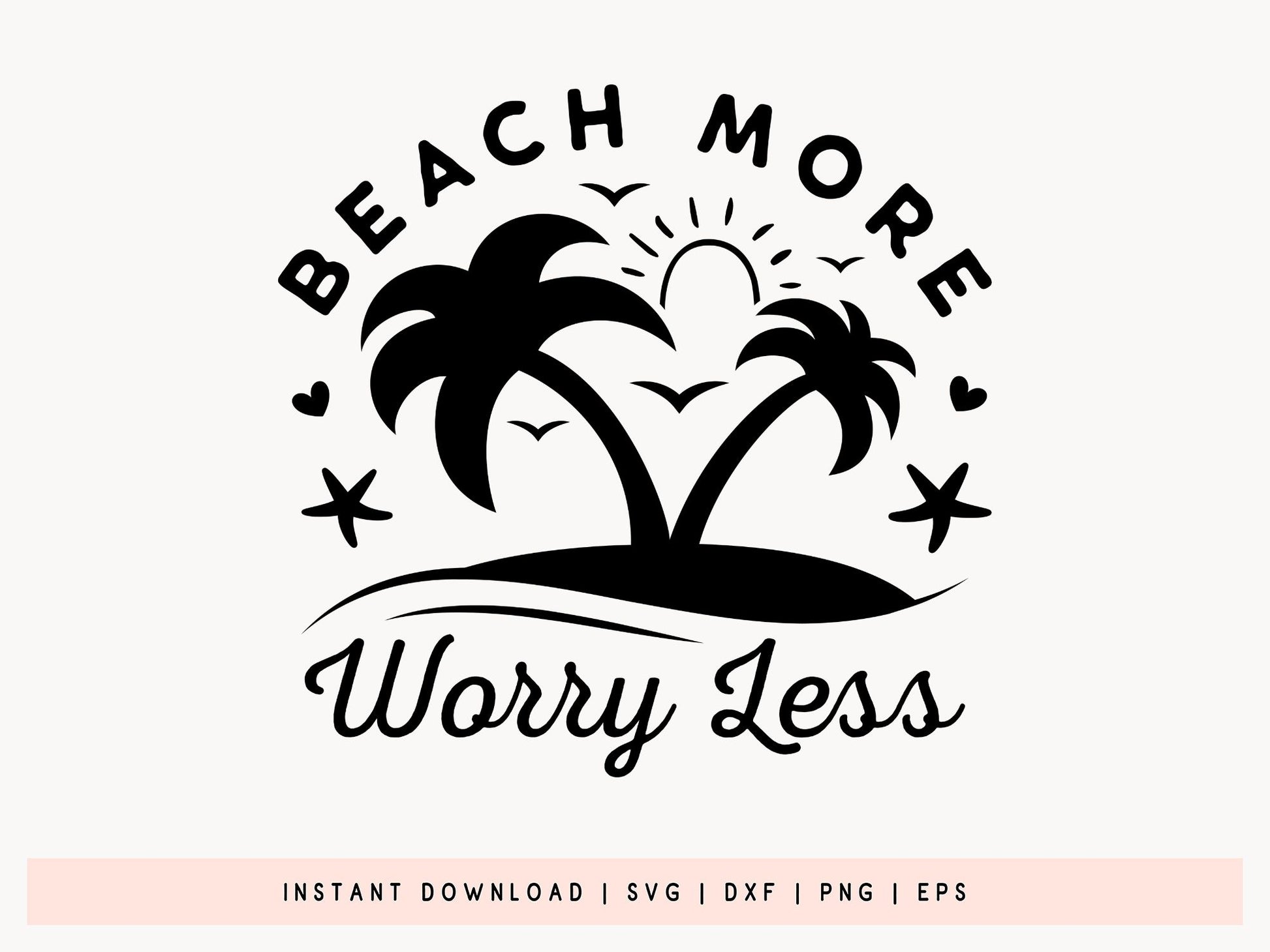 For all the beach lovers out there, our Beach More Worry Less SVG File SVG design is a must-have! It includes vector graphics like two palm trees with a beach and relaxation theme. This graphic is perfect for creating t-shirts, tote bags, signs, or summer gifts, adding a bright and relaxing touch to any project. This design is available in SVG, DXF, PNG, and EPS formats, making it compatible with Cricut, Silhouette, and other cutting machines. Whether you're a beginner or a seasoned crafter, you'll find it super easy to personalize and use. From decorating your beach house to creating memorable vacation keepsakes, the Beach More Worry Less SVG brings warmth and joy to every project.