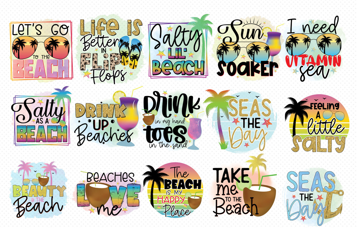 Have a look our vibrant Beach Sublimation Designs Bundle! This bundle is filled with 31 unique and eye-catching beach designs that are perfect for creating sunny vibes on t-shirts, tote bags, mugs, tumblers, towels, and so much more. Each design is a high-quality 300 DPI PNG file with a transparent background, making it easy to use with heat presses or sublimation transfers. Whether you're making vacation shirts, beach-themed gifts, or fun decor, this Beach Sublimation Bundle has a playful mix of trendy, cute, and funny styles that every seaside lover will adore. These ready-to-use files are perfect for your heat press sublimation projects, ensuring your crafting experience is smooth and enjoyable. Download now and start crafting your perfect slice of summer!