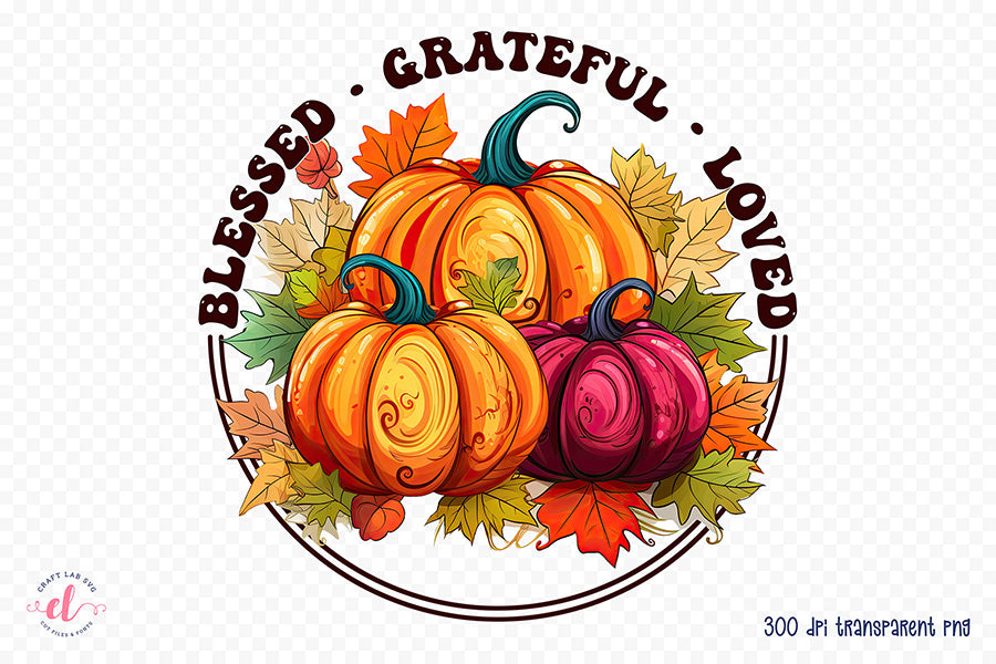 Blessed Grateful Loved | Thanksgiving Sublimation Design