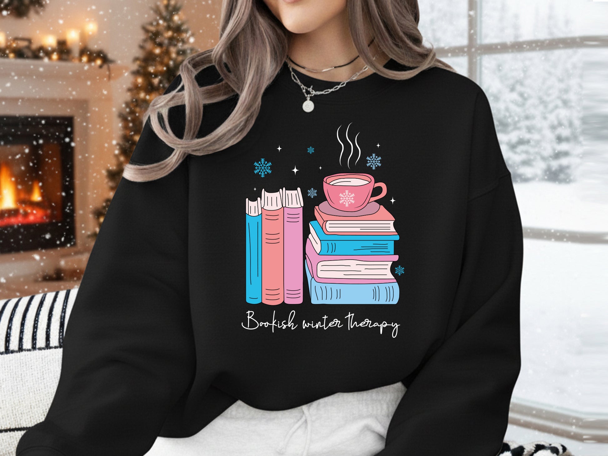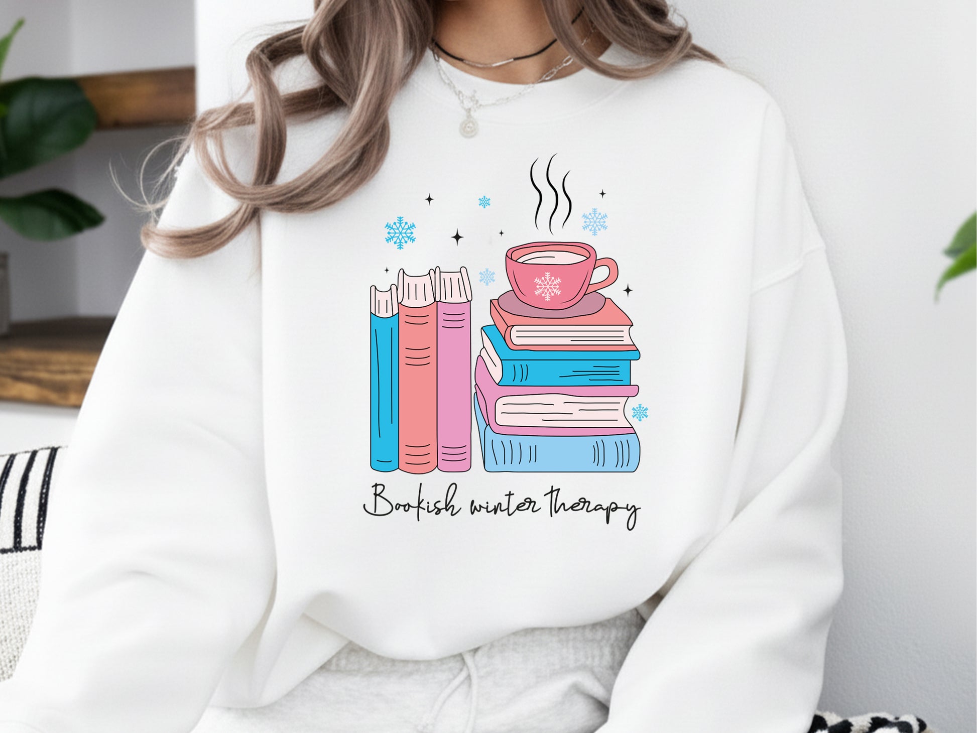Grab this lovely Bookish Winter Therapy Sublimation Design and create something your customers will adore!