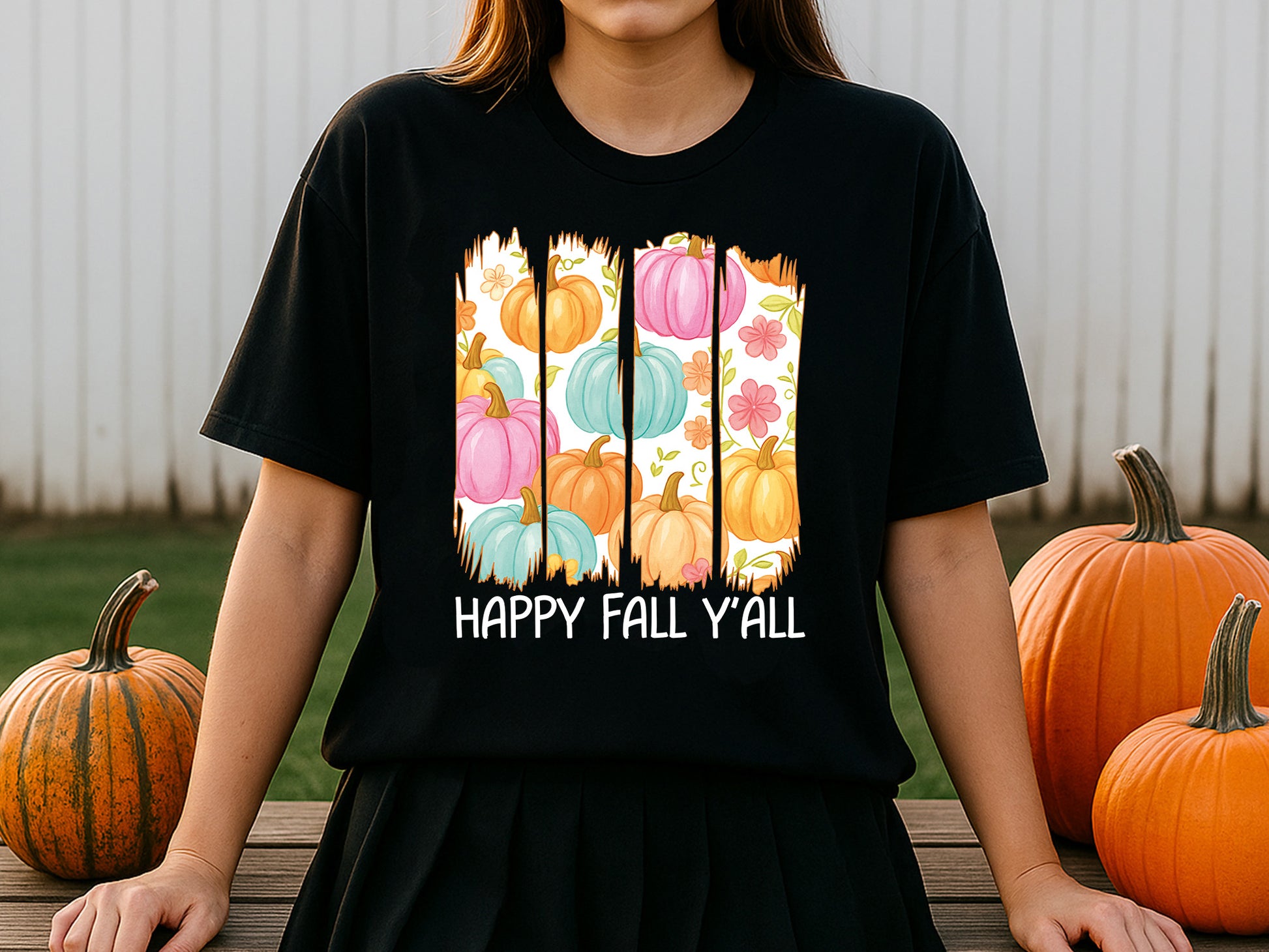 - Phrase “Happy Fall Y'all” in brown at the bottom
