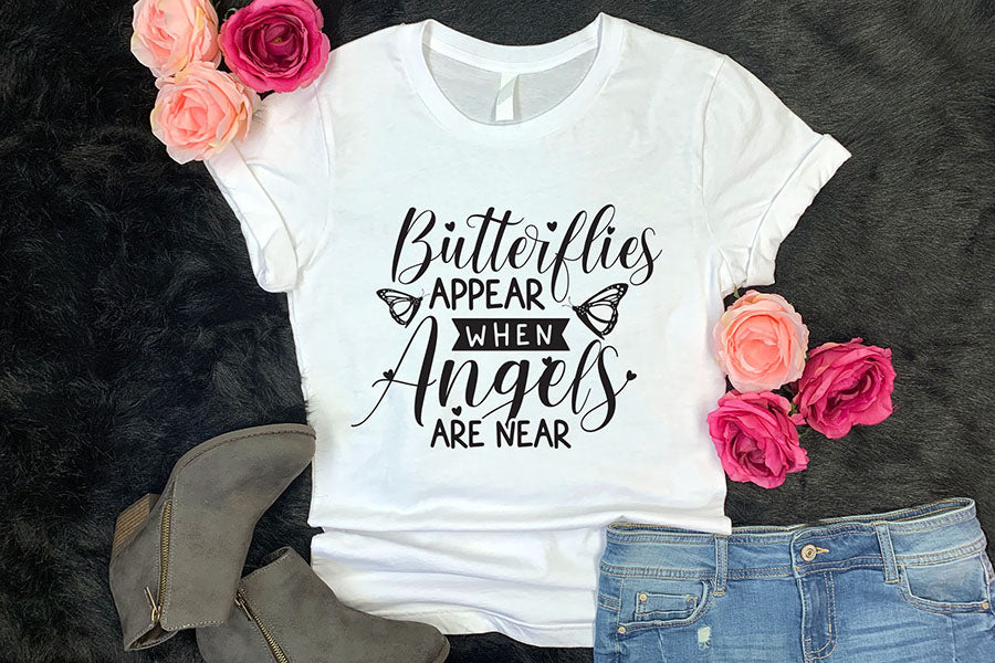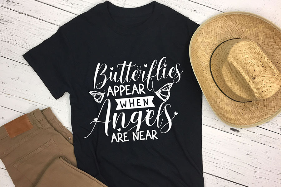 Download "Butterflies Appear When Angels Are Near - SVG Butterfly" design, perfect for both crafters and diy enthusiasts looking add a touch of natural beauty to their projects. With its beautiful butterfly graphics and elegant typography, this "Butterflies Appear When Angels Are Near" design is ideal for making your personalized gifts, crafts, apparel and more. Whether you want to make amazing t-shirts, mugs, signs or other physical items, our SVG Butterfly is a perfect choice. Grab now and elevate your crafting projects!
