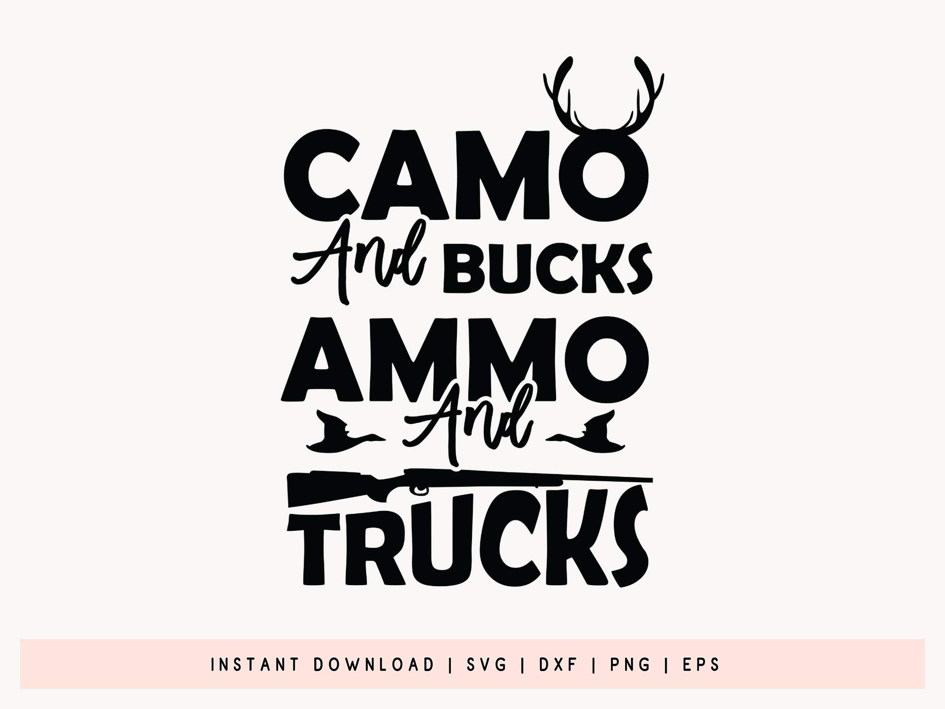 Camo and Bucks Ammo and Trucks, Funny Hunting SVG