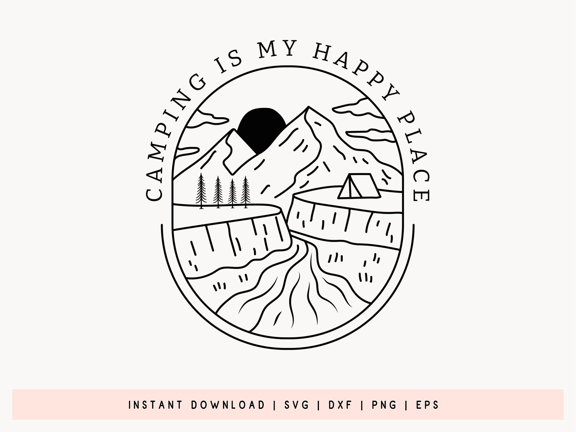 Looking for a unique camping SVG design? You've come to the right place! Our "Camping is My Happy Place" SVG vector is perfect for your next outdoor project. Whether you’re creating beautiful shirts, mugs, or signs for that upcoming adventure, this camping SVG is essential for any nature enthusiast. It’s customizable and super user-friendly with Cricut, Silhouette, and other cutting machines. This camping design includes high-quality SVG, DXF, EPS, and PNG files to guarantee a smooth crafting journey. If you love the great outdoors and want to showcase that passion in your next project, this outdoor SVG is a fantastic choice. Take a look it now!