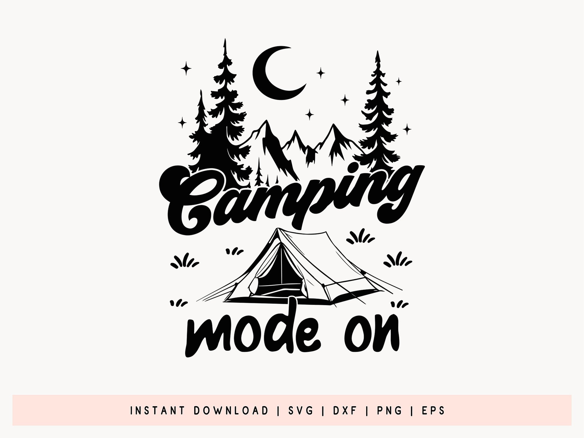 This creative Camping Mode On SVG, DXF, EPS, PNG design is great for making crafts, apparel, gifts, and decorations! It’s ideal for outdoor enthusiasts, as this camping SVG infuses fresh air and fun vibes into your projects. This is a digital design featuring a camping scene and the phrase "Camping mode on." Whether you're creating t-shirts, mugs, signs, or cozying up your camper's decor, this camping SVG design brings that perfect touch of rustic charm. Besides, the camping SVG design is fully customizable and available in SVG, DXF, EPS, and 300 dpi PNG formats. It's suitable to use with Cricut, Silhouette Cameo, Vinyl, and other cutting machines. Add a touch of outdoor into your creative projects with this funny camping SVG. Discover now!