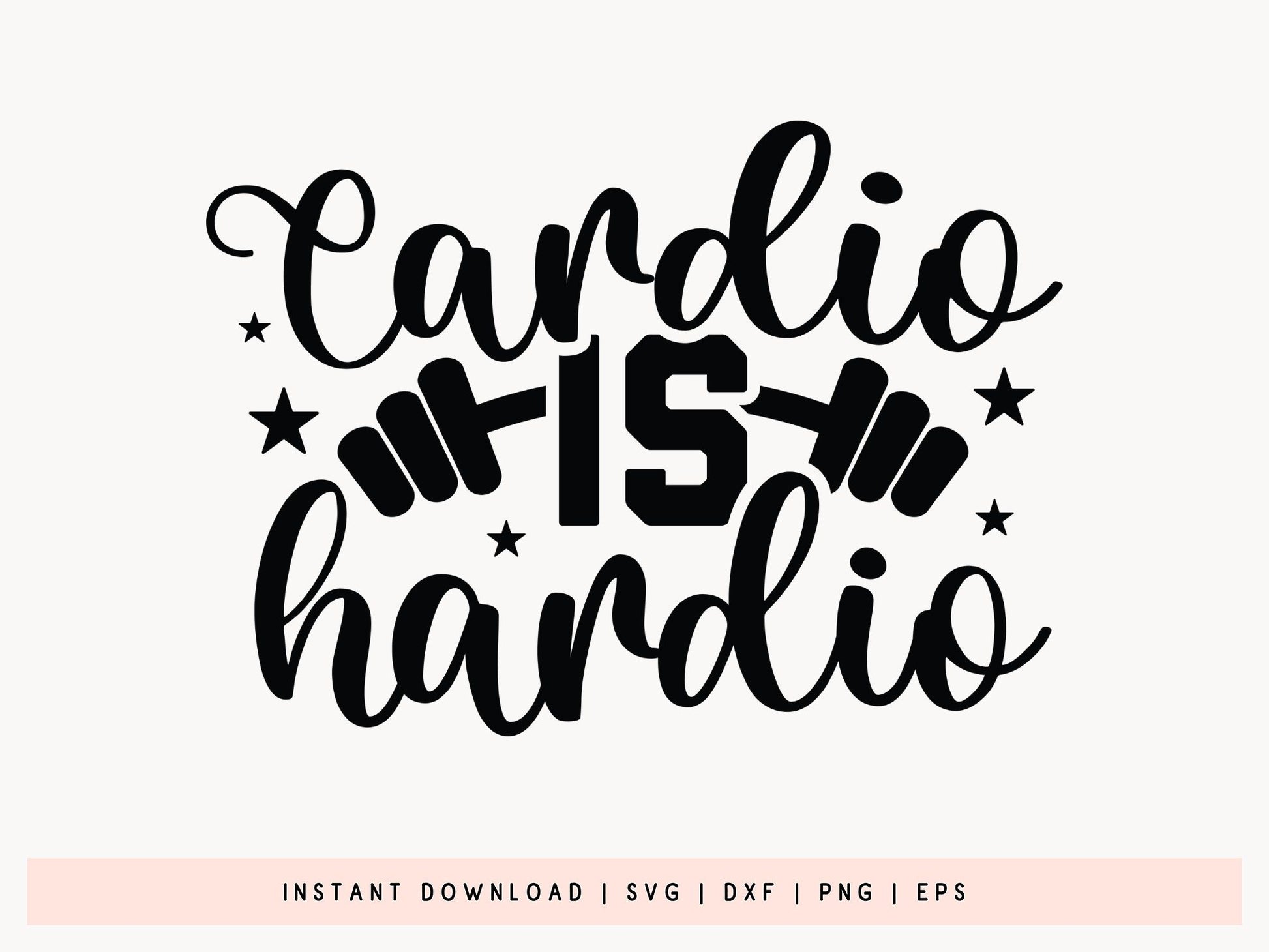 The Cardio is Hardio - Workout SVG Funny design is perfect for gym lovers and anyone who appreciates a good humor. It’s ideal for crafting unique workout shirts, gym bags, water bottles, or even wall decor. Whether you’re making something for yourself or creating motivational gifts for your gal pals, this Workout SVG Funny graphic is sure to bring inspiration. The download includes SVG, DXF, PNG, and EPS files, making it compatible with Cricut, Silhouette, and other cutting machines. It’s easy to personalize and a lot of fun to use, adding a splash of personality to any fitness project. Create eye-catching items for your workout wardrobe or surprise someone with a gift using this handmade Workout SVG Funny design. View now!