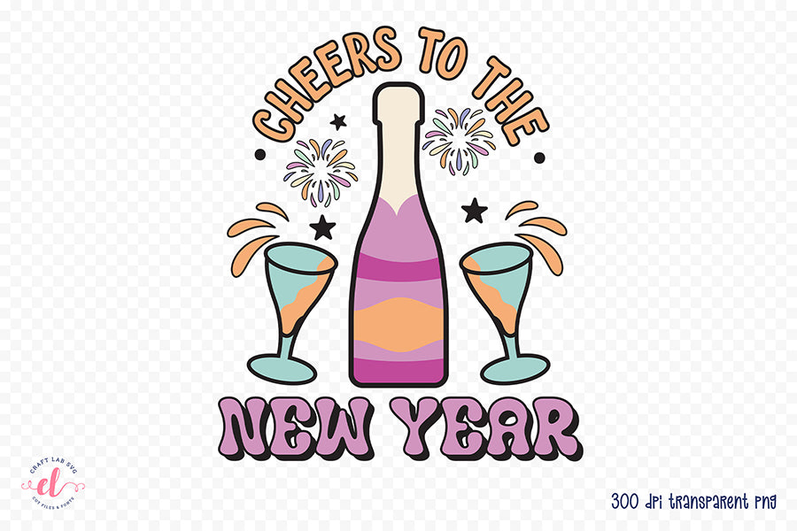 Cheers to the New Year Retro PNG, Sublimation Tshirt