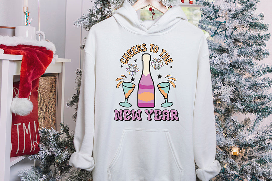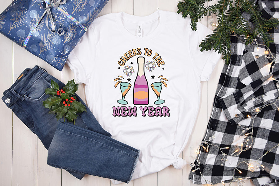 Add a touch of celebration to your New Year’s Eve products with this Cheers to the New Year Retro Sublimation Tshirt design. Ideal for New Year crafts, gifts and decorations. Make adorable sublimation tshirt for celebrating New Year. Ready to sublimation transfers on t-shirts, mugs, hoodies, cards, tote bags, pillows, and much more!