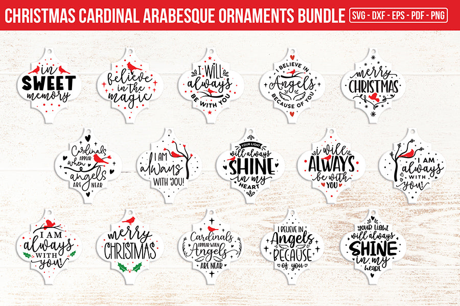 Craft unique Christmas ornaments and gifts with our Christmas Cardinal Arabesque Ornament SVG Bundle - a unique collection of 15 adorable designs. These detailed cardinal and arabesque designs will add a touch of festive sophistication to your Christmas projects.