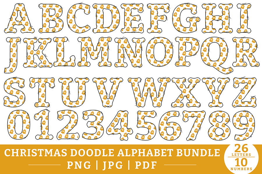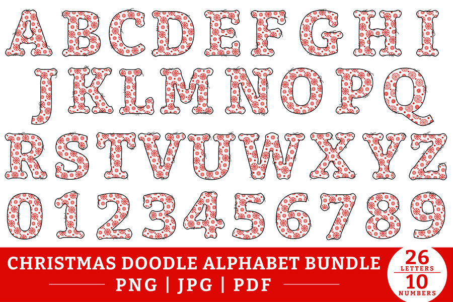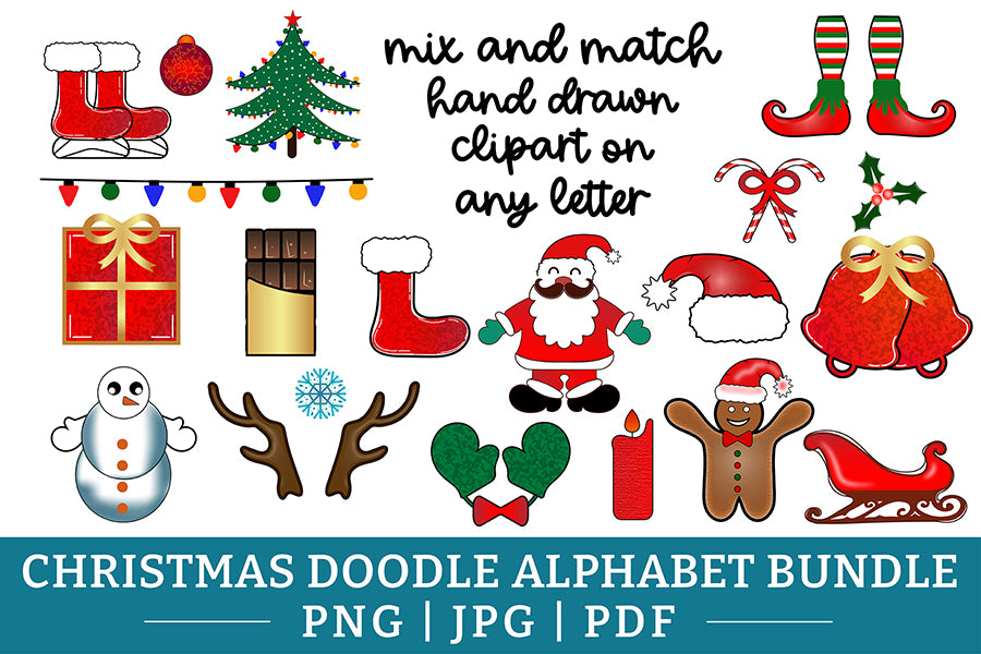 Christmas Doodle Alphabet PNG Bundle