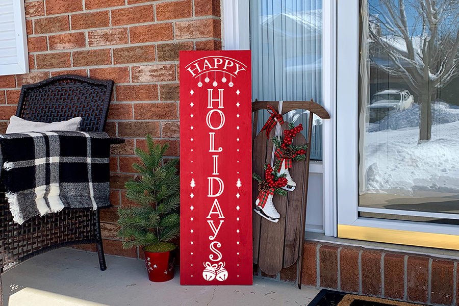 Deck the halls with our festive Christmas Porch Sign SVG design. Customize your holiday decor in style. Perfect to create porch / vertical signs, welcome signs, front door signs, outdoor decor, and more!