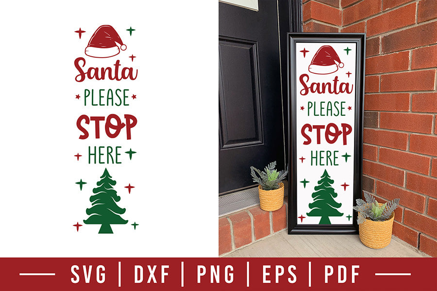 Christmas Porch Sign SVG - Santa Please Stop Here