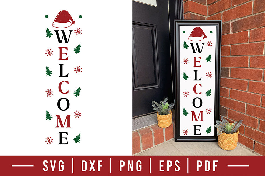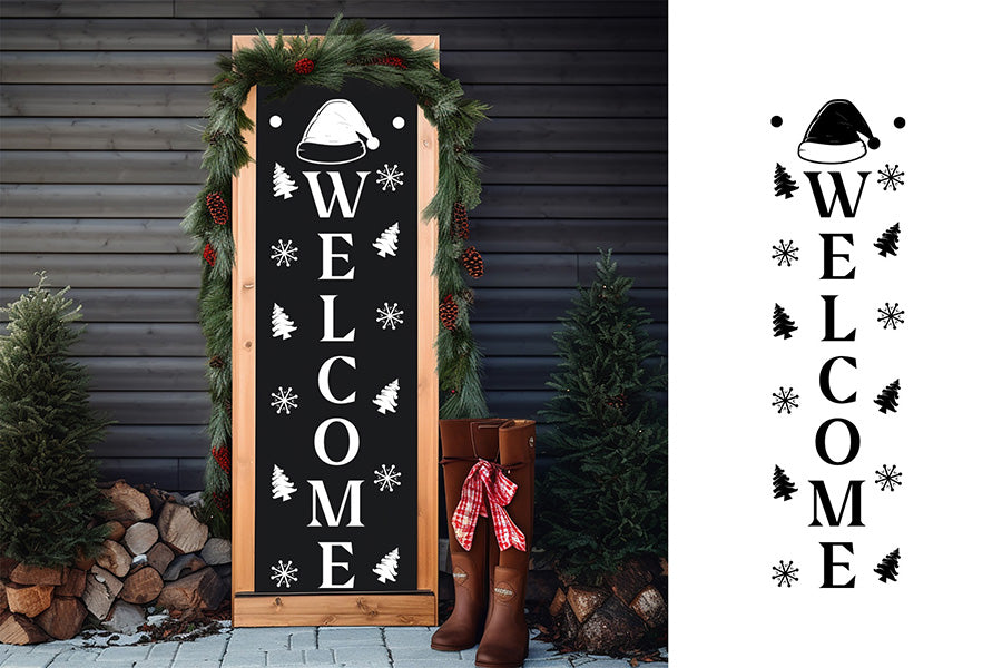 Create a beautiful sign to welcome Christmas using this creative Porch Sign SVG design. Perfect for making porch / vertical signs, welcome signs, wall decals, front door signs, outdoor decor, and much more.