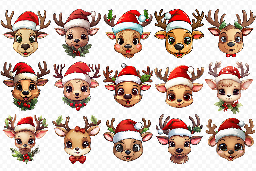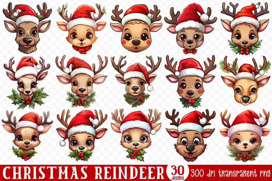 Get ready for joyful crafting with the Christmas Reindeer Sublimation Clipart Bundle. This curated collection features 30 cute designs for sublimation printing, perfect for adding Christmas cheer to your projects. You can use them for creating t-shirts, mugs, tote bags, pillows, hoodies, and more!