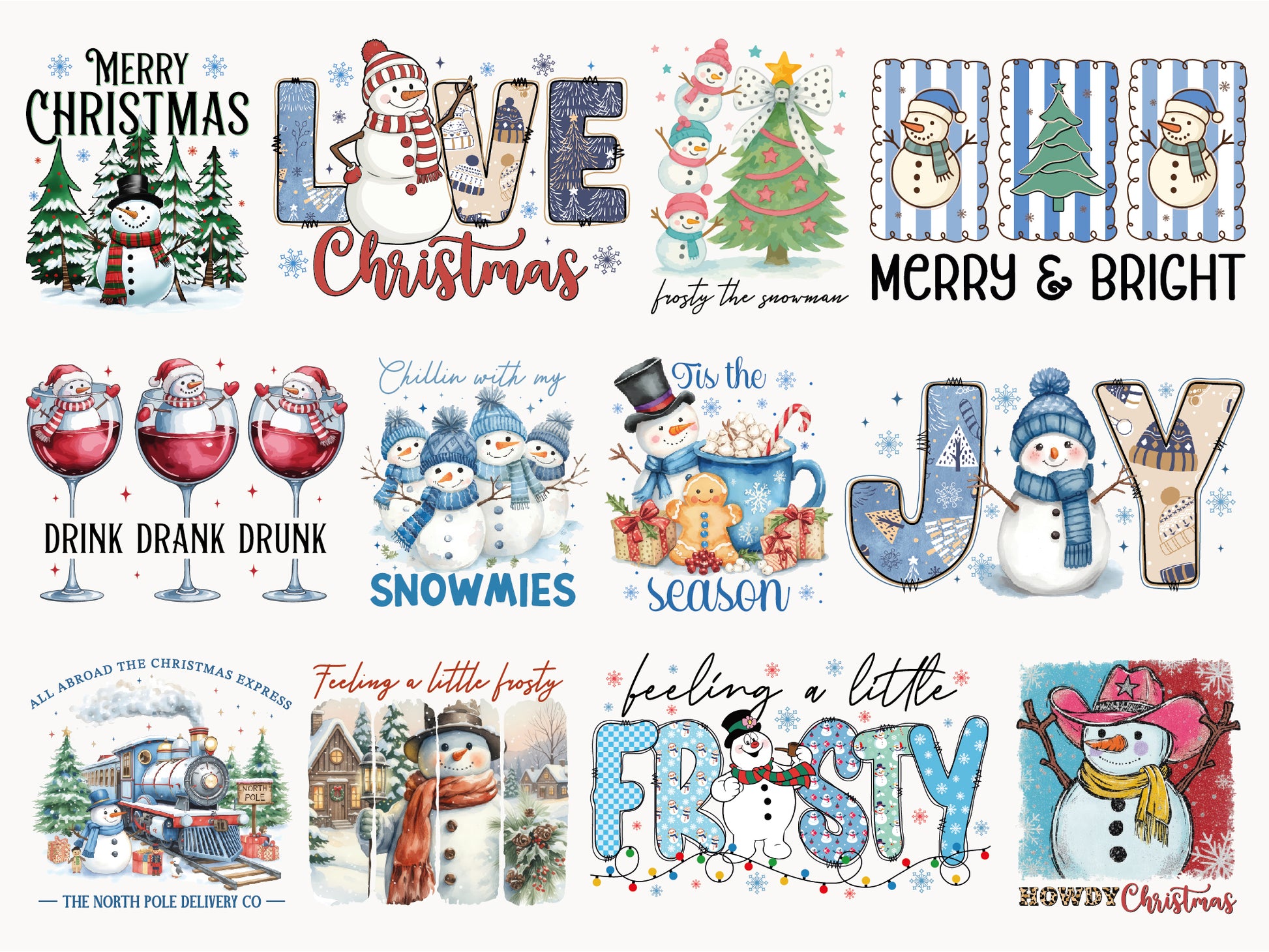 Christmas Snowman Sublimation Designs Bundle