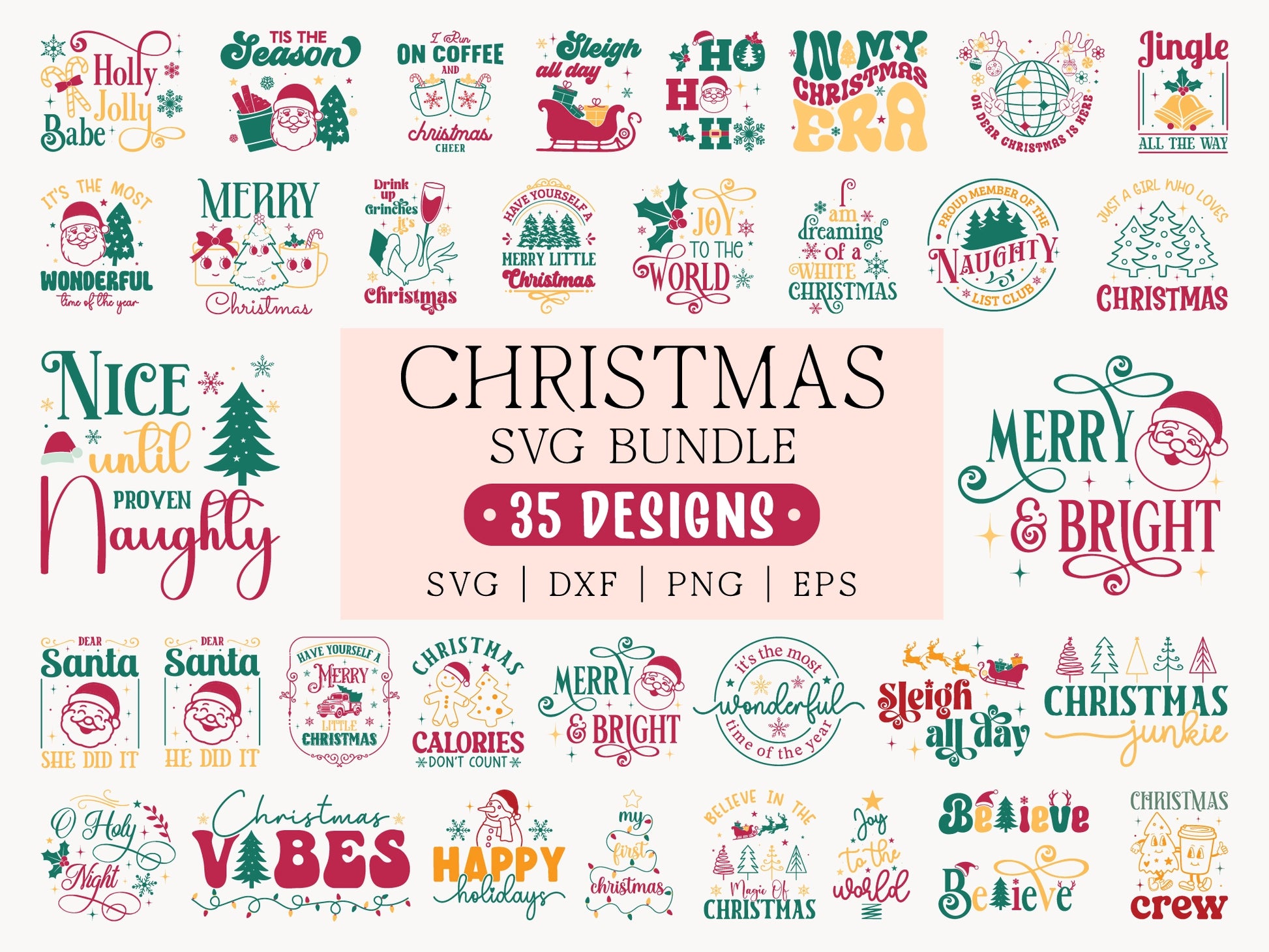 Download Christmas SVG PNG Bundle, packed with 35 beautifully crafted designs perfect for all your holiday projects. Whether you’re creating personalized gifts, festive apparel, holiday decorations, or digital projects, this collection has something for everyone. Each design comes in versatile SVG, DXF, EPS, and PNG formats, making them compatible with cutting machines like Cricut and Silhouette, as well as printable for sublimation crafts. From whimsical quotes to festive holiday theme graphics, this bundle has everything for crafters and diy enthusiasts looking to create t-shirts, mugs, totes, hoodies, or home decor items. Celebrate the magic of the holidays and let your creativity sparkle with the Christmas SVG PNG Bundle! Check it out now.