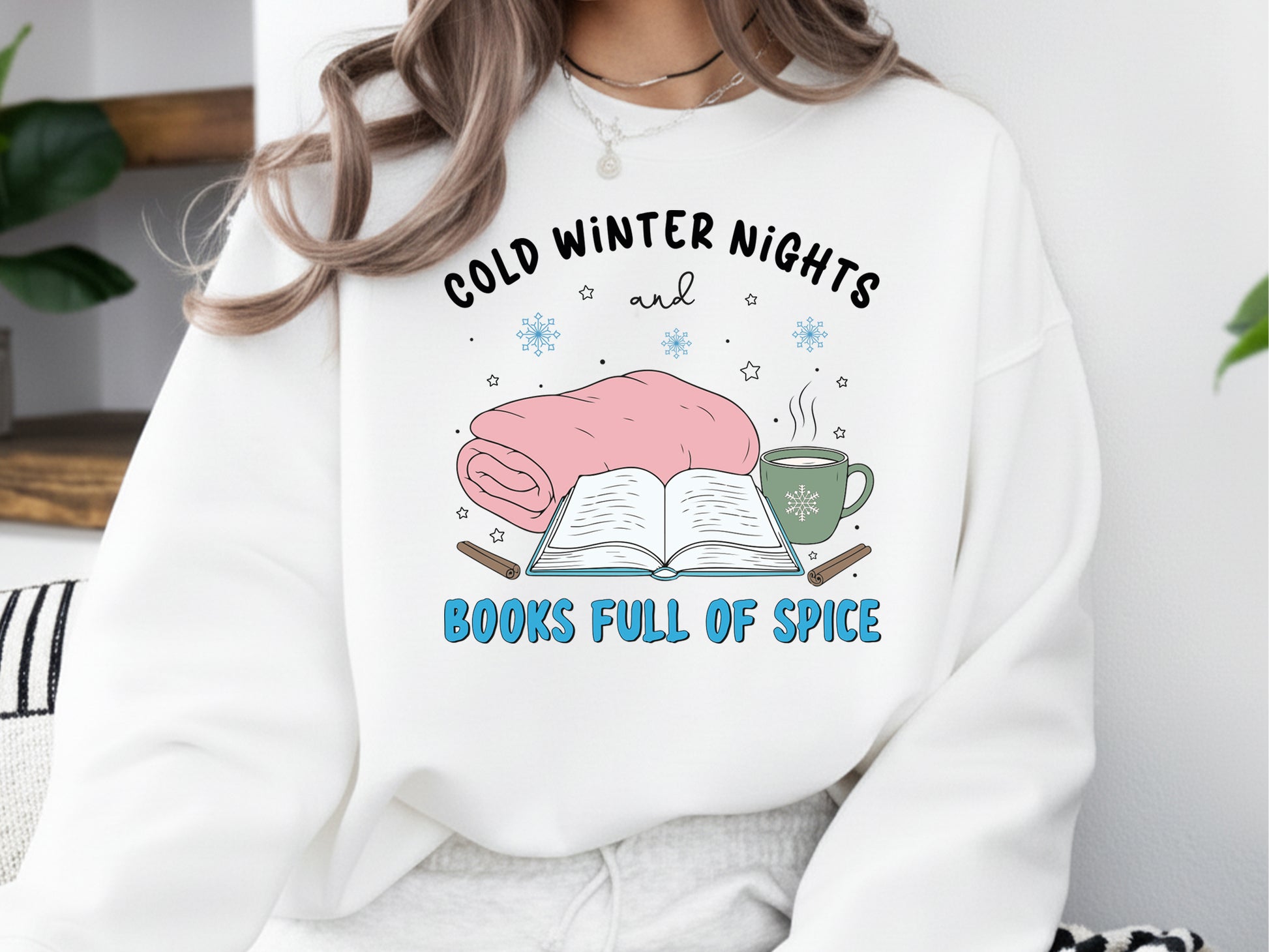Grab this Cold Winter Nights and Books Full of Spice Sublimation design today and make something your customers will adore!