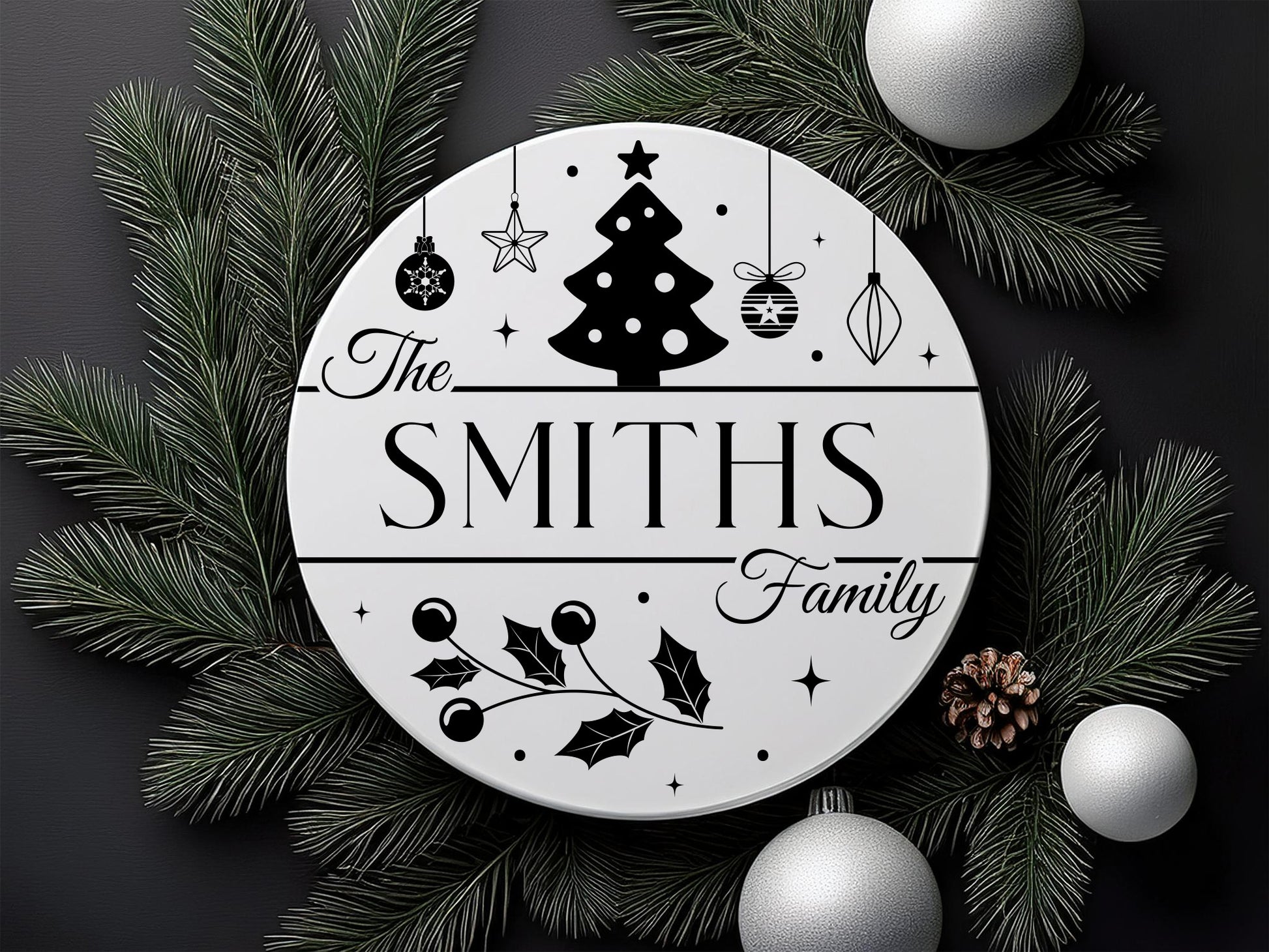Download the Custom Christmas Family Name Sign SVG, a perfect way to add a personal touch to your holiday decor. This beautifully designed SVG allows you to customize your family name, creating a festive and unique sign that celebrates togetherness during the most wonderful time of the year. Ideal for crafting wooden signs, door hangers, or even framed wall art, this Custom Christmas Family Name Sign SVG design adds warmth and charm to any home. Whether you're decorating your own space or creating a thoughtful, handmade gift, this customizable SVG is a memorable way to honor family traditions this Christmas season. Explore now!