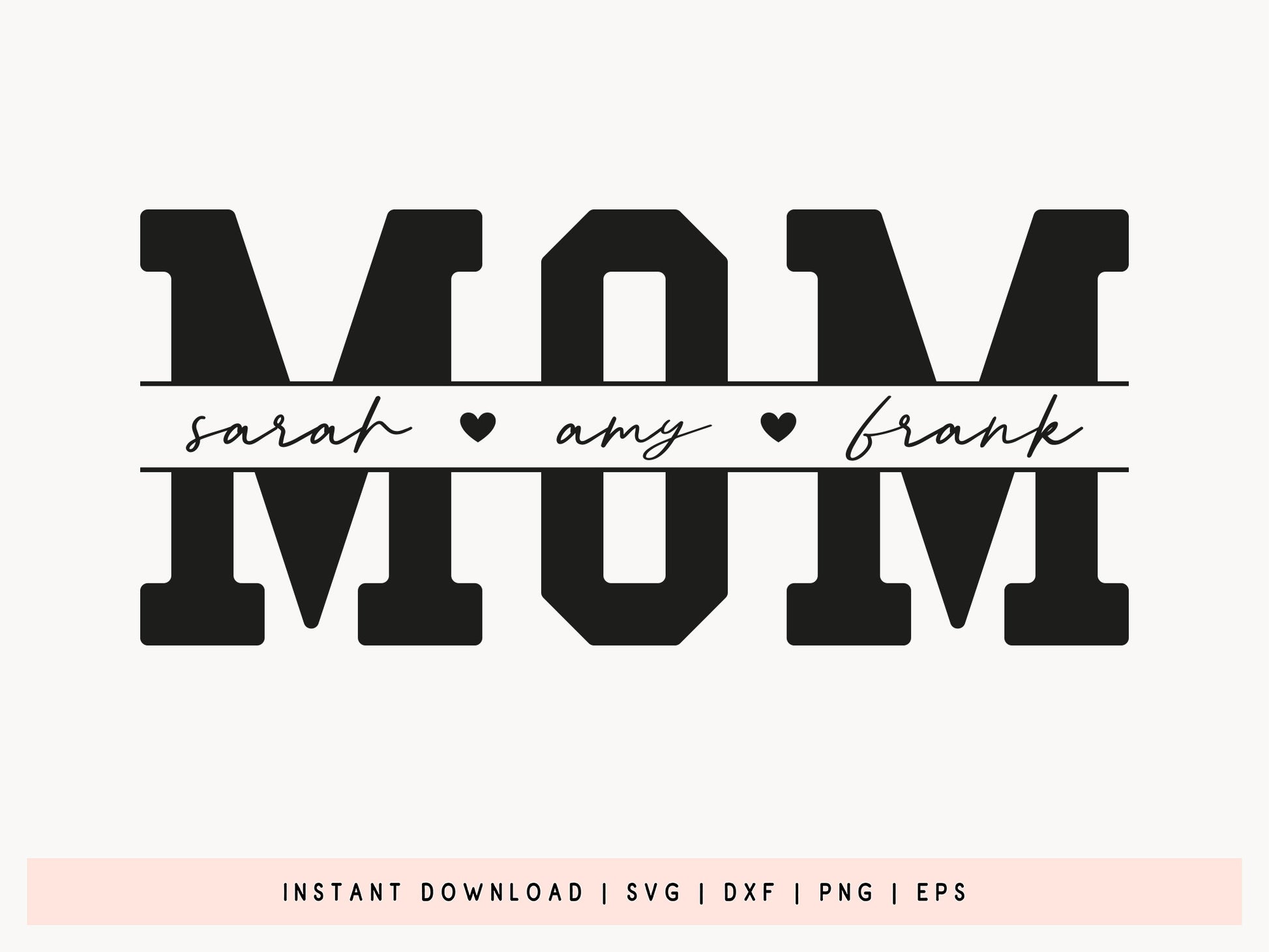 Looking to create a truly special gift? Check out the Custom Name Mom Split Monogram SVG Design! This beautiful mom SVG is super easy to personalize with any name, making it an ideal choice for making Mother’s Day gifts, home décor, clothing, and so much more. Whether you’re creating a heartfelt t-shirt, tote bag, mug, sweatshirt, or lovely decorative card, the design brings that personal touch you’re after. It comes in SVG, DXF, EPS, and PNG formats, so it works perfectly with Cricut, Silhouette, and other cutting machines. If you’re into DIY projects, this Mother’s Day SVG is your ticket to creating meaningful and chic keepsakes. Take your handmade gifts to the next level with this customizable mom SVG!