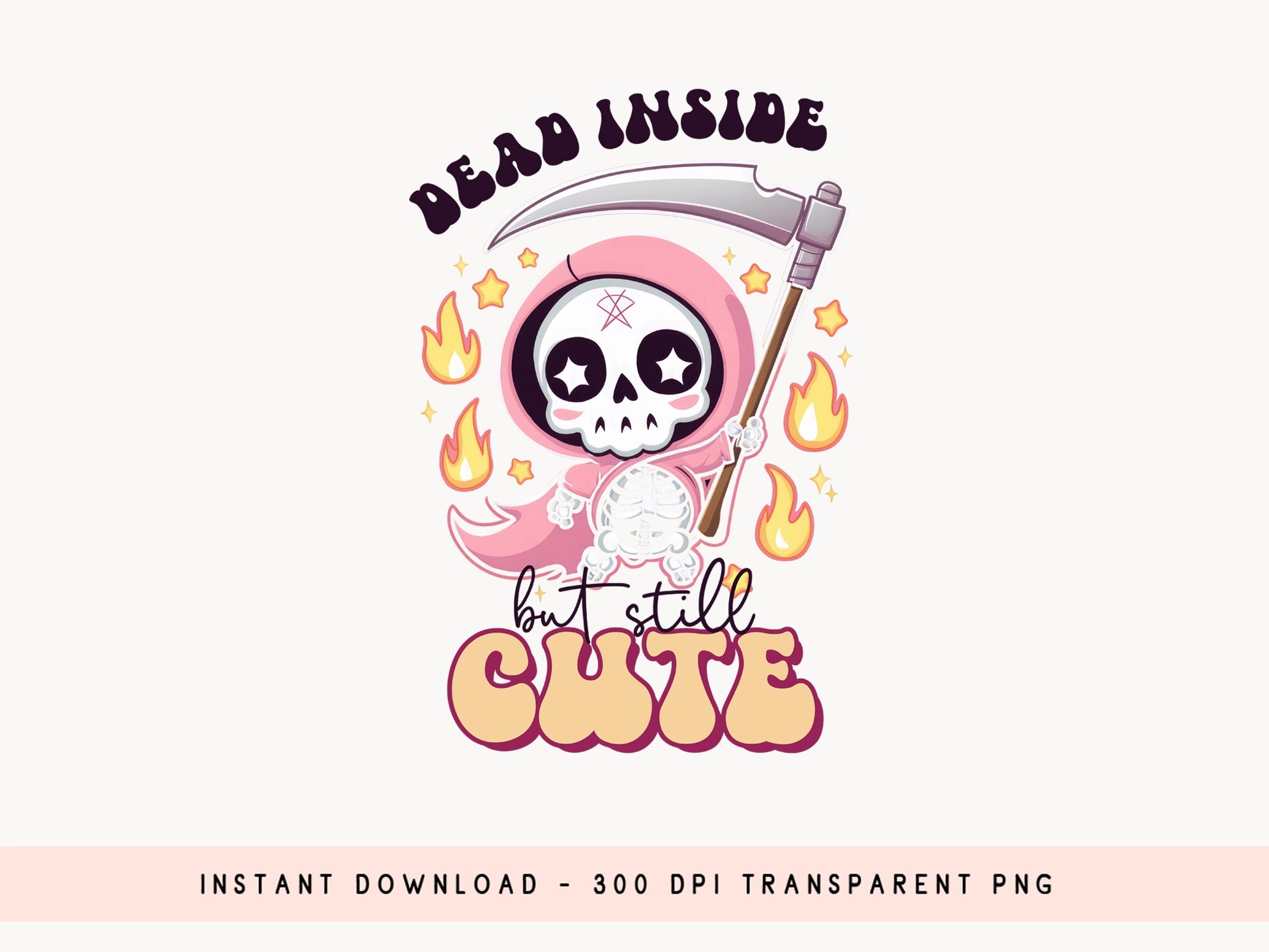 Check out our "Dead Inside But Still Cute - Pink Halloween Sublimation" design, a vibrant and eye-catching graphic perfect for your upcoming Halloween-themed projects! This fun and playful "Dead Inside But Still Cute" design showcases a charming Grim Reaper with a pink hooded robe and a scythe, making it a great choice for those who want to infuse some sass into their spooky season. Whether you're planning to create sweatshirts, t-shirts, tote bags, mugs, or more, this Pink Halloween Sublimation adds a chic and fierce touch to all your Halloween projects. Plus, it's ready for DTF and sublimation transfer, so you can get started right away. Don't miss out - download this fabulous sublimation design today!
