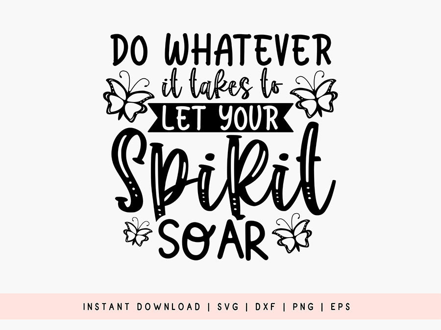 Elevate your crafting projects with our stunning "Do Whatever It Takes to Let Your Spirit Soar - Butterflies SVG"! Whether you are creating crafts, apparel or anything, our high-quality Do Whatever It Takes to Let Your Spirit Soar design will surely add an adventurous touch to your work. You can apply it on t-shirts, hoodies, signs, mugs, decorations, and more. Express your creativity with Butterflies SVG! Download now and start crafting with this butterfly design.