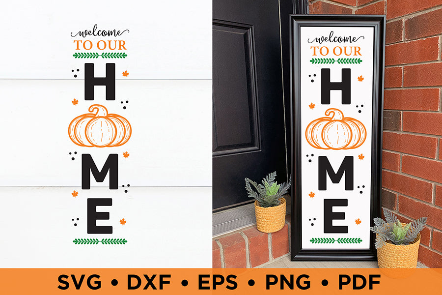 Add a touch of autumnal elegance to your porch with our sophisticated Fall Porch Sign SVG design. Use it to create porch / vertical signs, welcome signs, front door signs, outdoor signs, and all DIY décor projects.