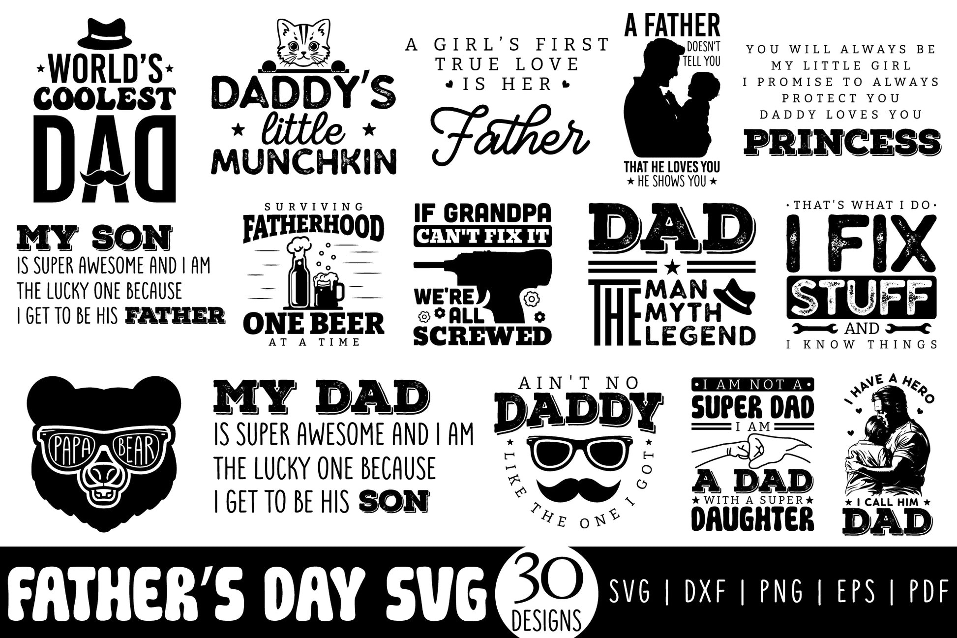 Take a look at our Fathers Day SVG Designs Bundle – a charming collection filled with 30 unique and creative designs that are just right for every type of dad. Each design is completely customizable and comes in SVG, DXF, EPS, and PNG formats that're great fit for Cricut, Silhouette, and other cutting machines. Whether you're making t-shirts, mugs, cards, or home decor items, this Fathers Day SVG Designs Bundle is here to help you make meaningful and unique gifts. With everything from funny dad quotes to heartfelt phrases, the Fathers Day SVG Designs Bundle has a style for every personality. If you're creating for your own dad or selling custom Father's Day items, our Fathers Day SVG Designs Bundle is a must-have for all crafters and designers.