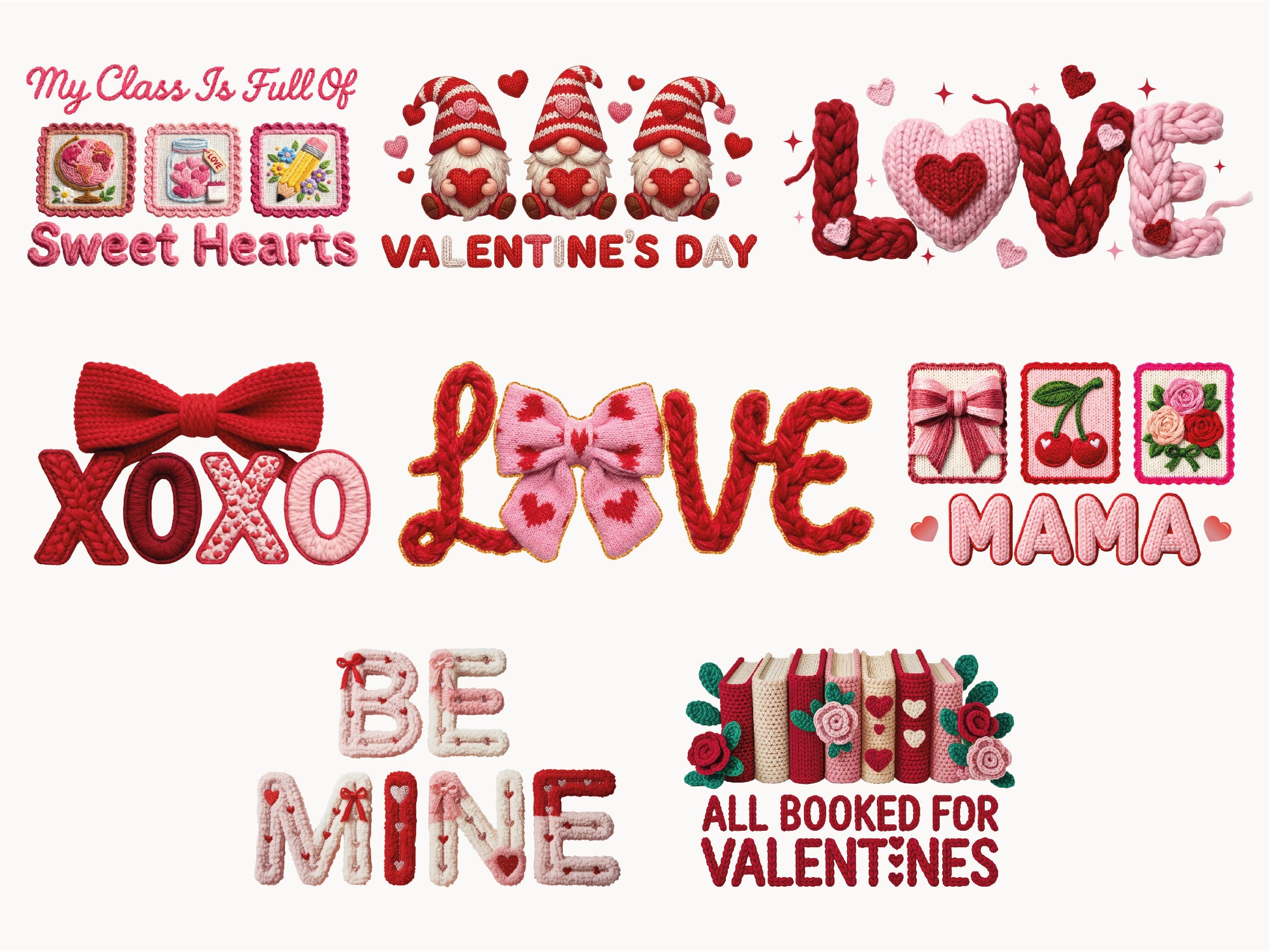 Download the Faux Yarn Valentine Sublimation PNG Bundle. This bundle is ready to take your Valentine collection to the next level!