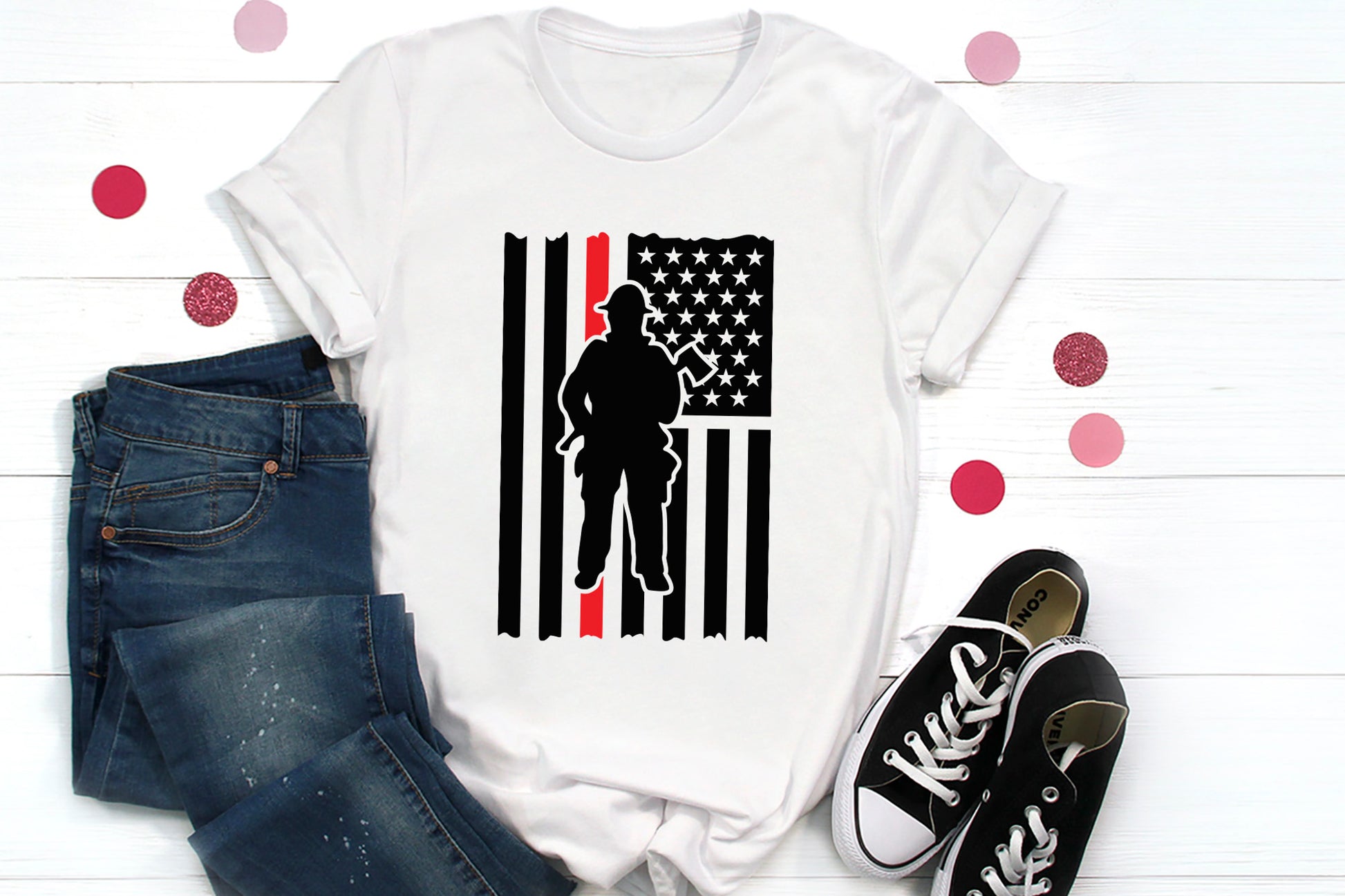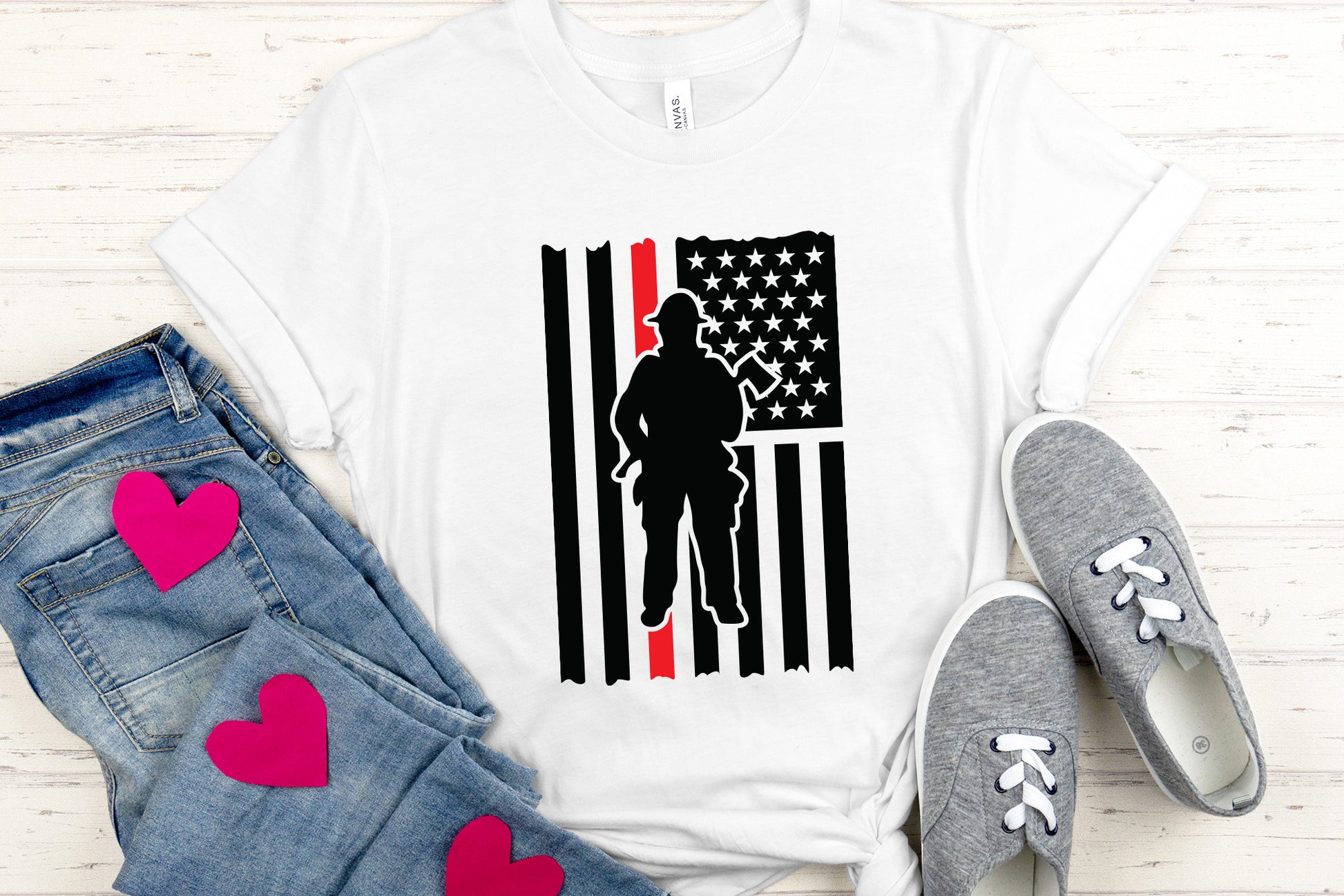 Discover our high-quality Firefighter American Flag SVG design that features a distressed American flag with a firefighter. It is perfect for creating shirts, decals, signs, gifts, and more. Whether you're crafting for a loved one or making items for firefighter fundraisers, the versatile Firefighter American Flag SVG Design is suitable for a range of heartfelt projects. Included in your download are SVG, DXF, EPS, PDF, and PNG file formats, ensuring compatibility with Cricut, Silhouette, and other cutting machines. You can easily customize the colors or text to personalize your creation. Our Firefighter American Flag SVG Design is a meaningful tribute that enhances your designs while expressing patriotism and pride.