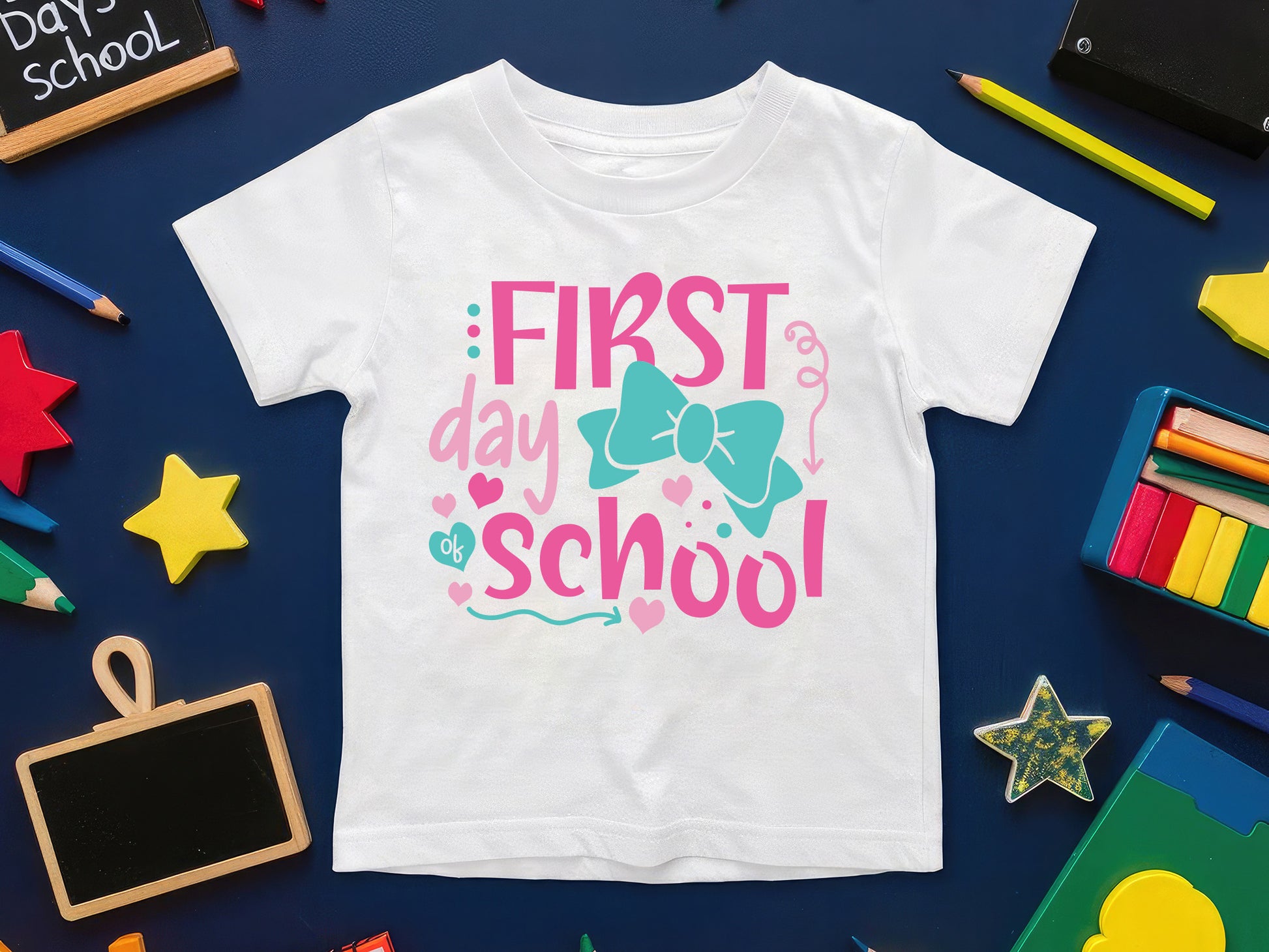 Grab this charming First Day of School - Back to School SVG File! It's just what you need for crafting adorable shirts, signs, mugs, backpacks, and keepsakes that everyone will adore. The delightful Back to School SVG File is fully customizable, making it perfect for teachers, students, and parents alike. Whether you're celebrating kindergarten, preschool, or any grade, this cheerful Back to School SVG file brings a fun and personal touch to your projects. It includes SVG, DXF, EPS, and PNG formats, ensuring compatibility with Cricut, Silhouette, and other cutting machines. You can easily create unique back-to-school gifts, photo props, and more using our Back to School SVG File.