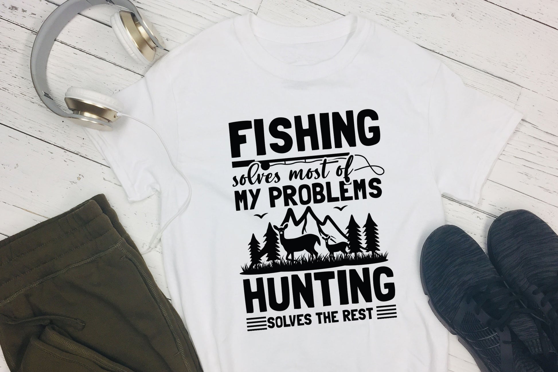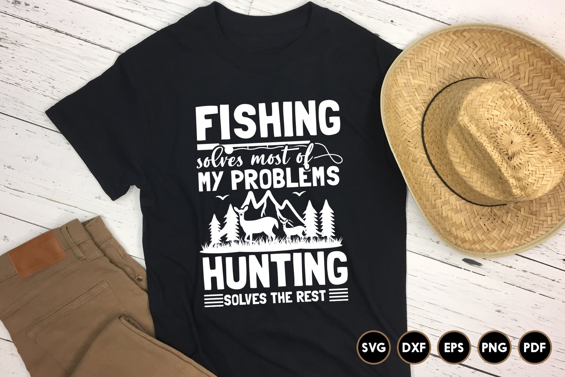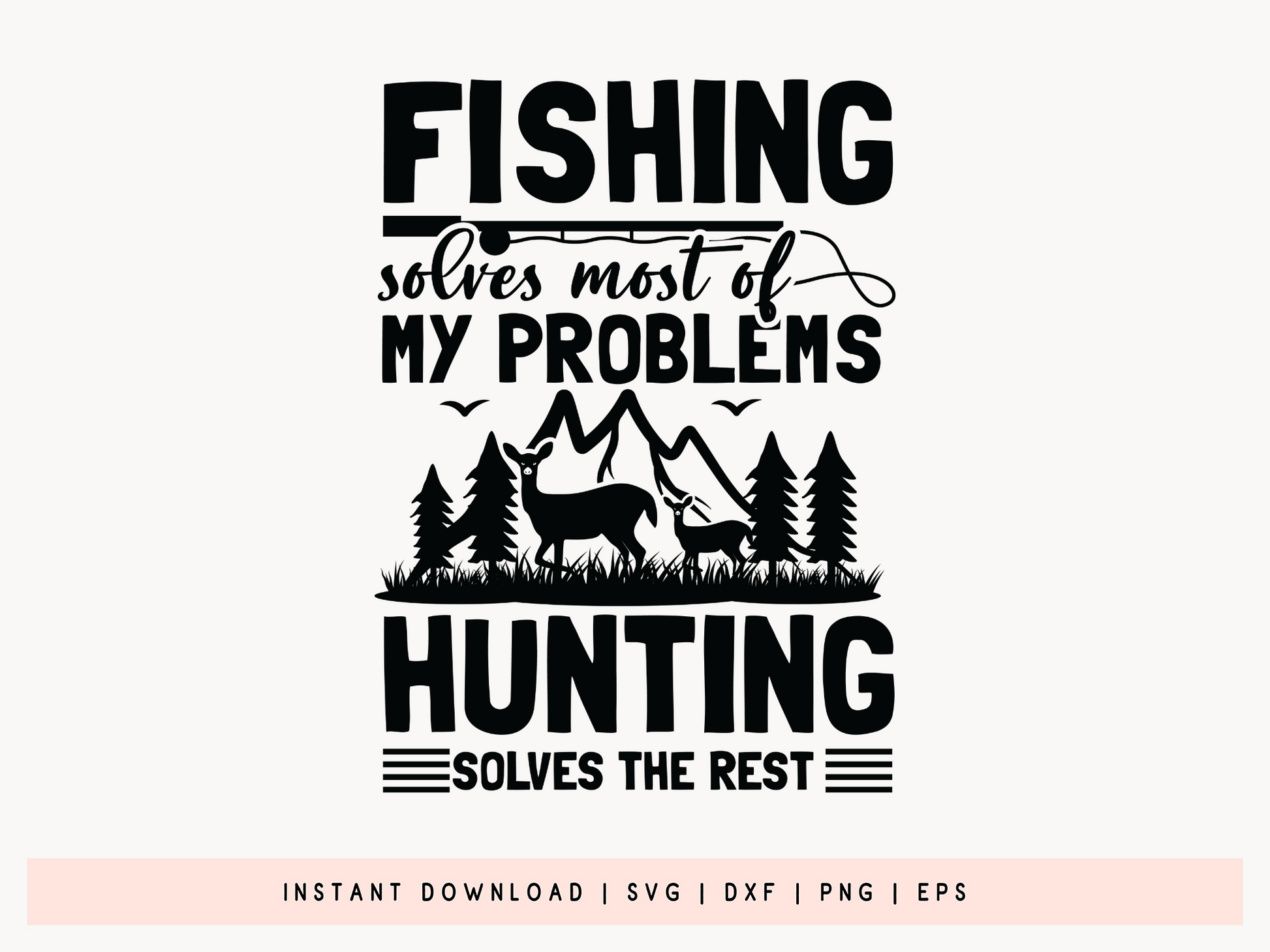 Check out the Fishing Solves Most of My Problems - Hunting SVG, a fantastic design for anyone who loves the great outdoors! This Fishing Hunting SVG combines a bit of humor with a passion for nature, making it perfect for shirts, mugs, signs, and gifts. Whether you're creating something special for a fishing fanatic or a hunting friend, our Fishing Hunting SVG is versatile. It is fully customizable and works seamlessly with Cricut, Silhouette, and other cutting machines. You can get it in SVG, DXF, PNG, and EPS formats in the design. This Fishing Hunting SVG is ideal for rustic decor, clothing, and DIY gift ideas that showcase a love for nature and outdoor adventures.