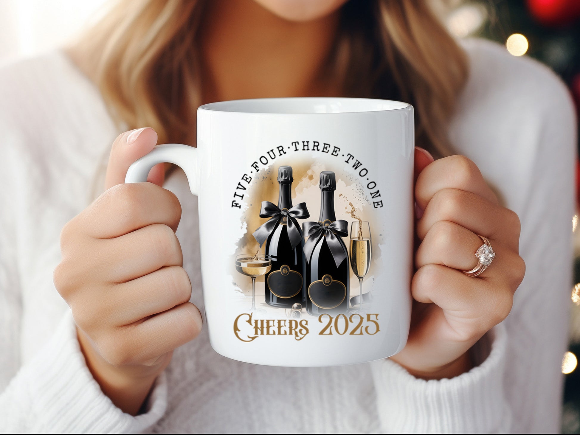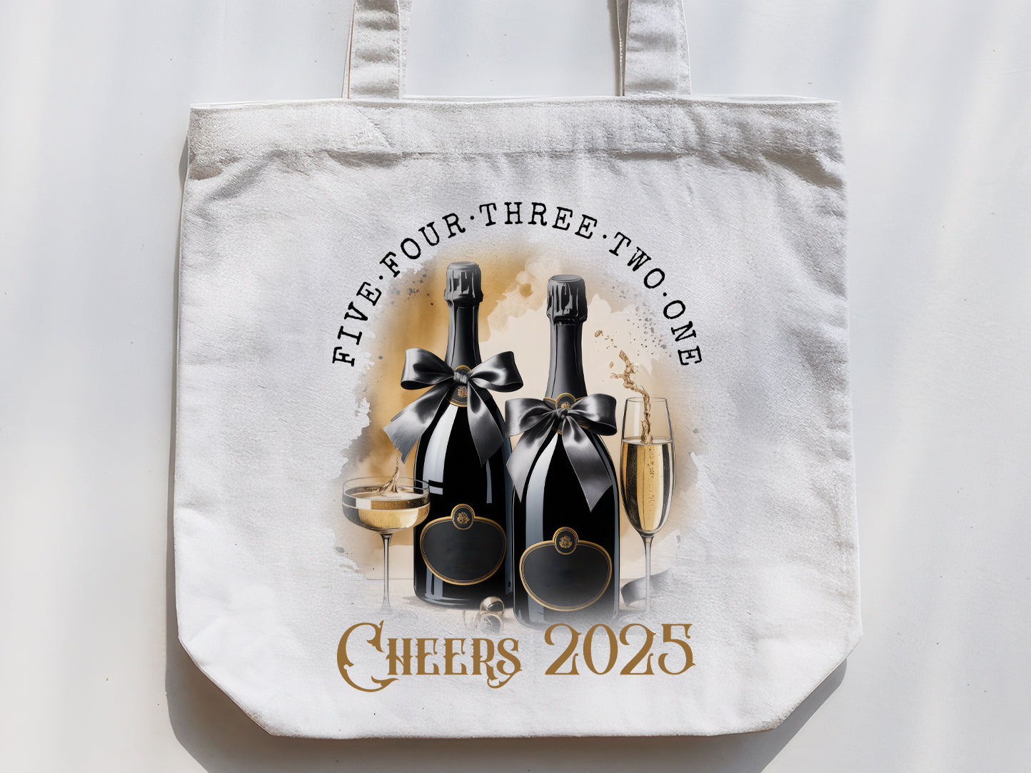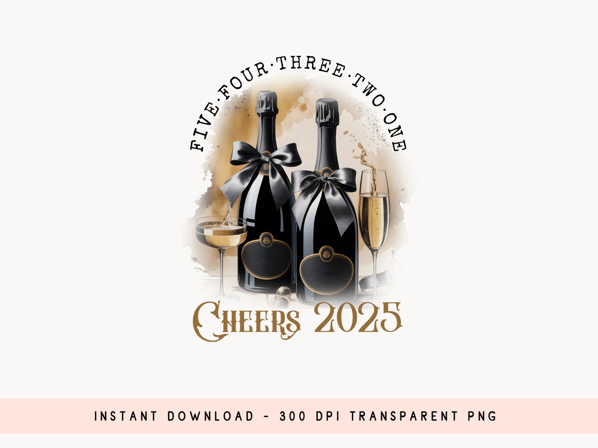Explore our "Five Four Three Two One Cheers 2025 - New Year Sublimation" design! Perfect for New Year’s Eve festivities, this design brings the excitement of the countdown to your favorite projects like T-shirts, mugs, totes, sweatshirts, and more. The elegant typography and two champagne bottles with black ribbons and glasses, make it a standout addition to any holiday gathering. Its high-quality PNG file is ideal for sublimation printing. Whether you're making stunning gifts, this "Five Four Three Two One Cheers 2025" design adds a fun and festive vibe. Ring in 2025 with a countdown to remember new beginnings with the New Year Sublimation design! Grab now.