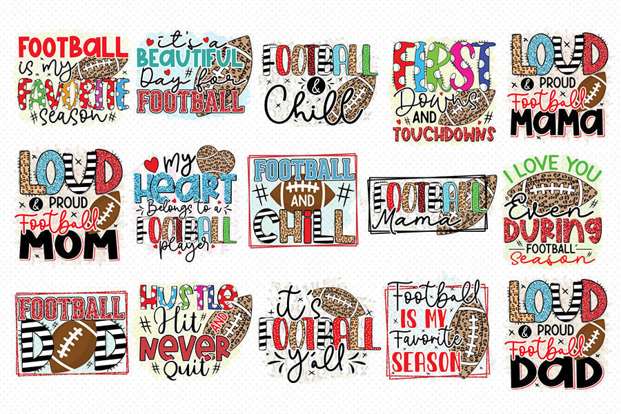 Elevate your creativity with our Football Sublimation Bundle, a comprehensive collection of 30 high-quality designs that capture the essence of the game. Use them for creating t-shirts, mugs, tote bags, pillows, and more!