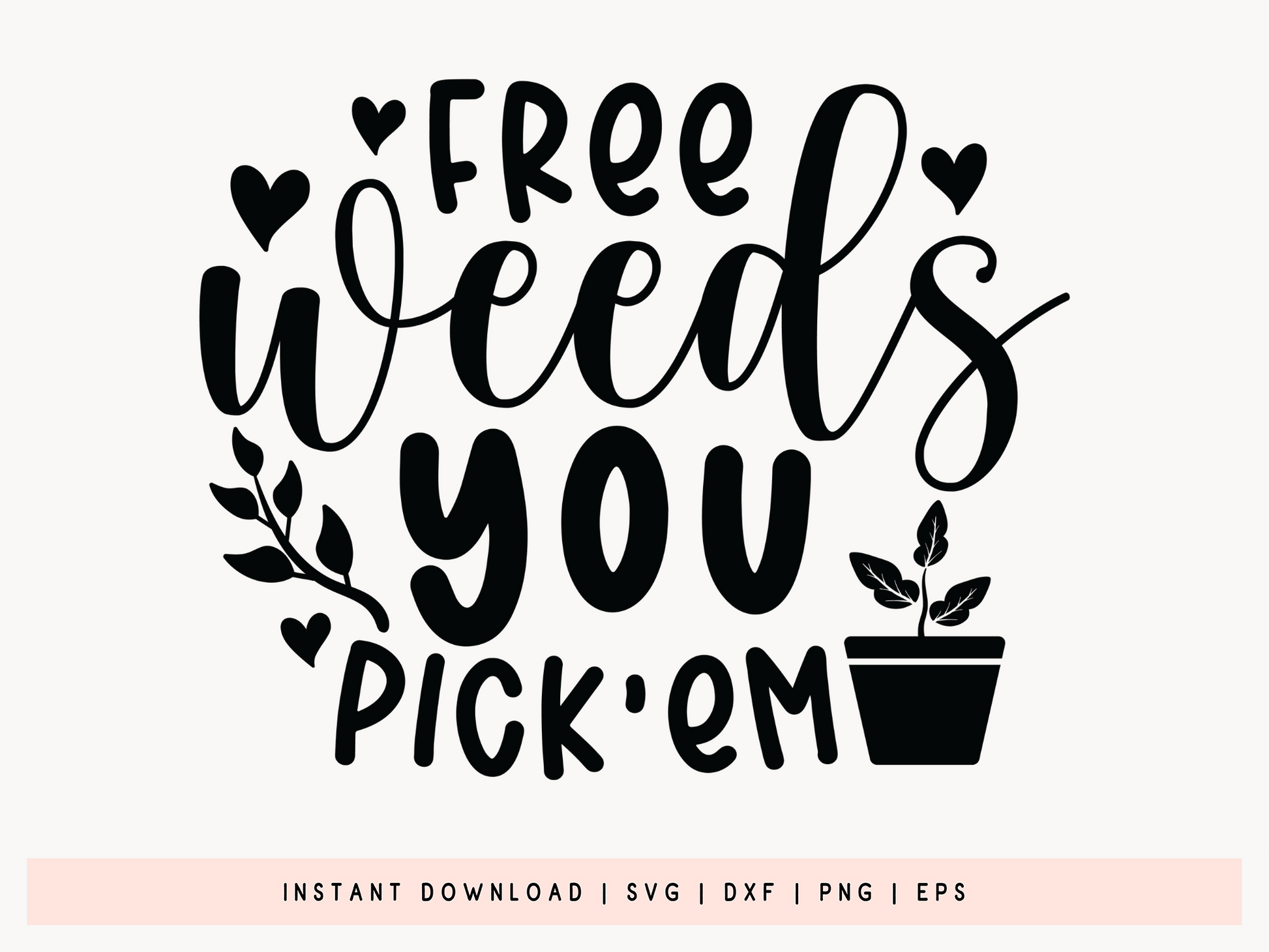 This Free Weeds You Pick'em - Gardening SVG design is perfect for those plant enthusiasts who love to have a little fun. Our Gardening SVG is fully customizable, making it a fantastic choice for creating everything from garden signs to tote bags and t-shirts. Whether you're jazzing up your shed or making a thoughtful gift for a friend with a green thumb, the Gardening SVG is a versatile addition. The high-quality design comes in SVG, DXF, PNG, and EPS formats, so it works seamlessly with Cricut, Silhouette, and other cutting machines. With its cheerful quote and creative themes, this Gardening SVG adds a delightful touch to any garden-themed project. Browse now!