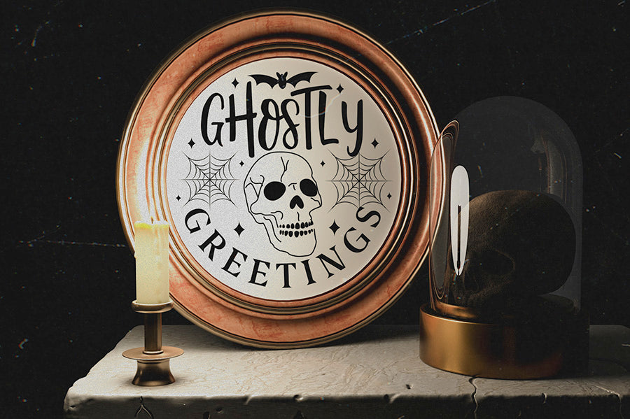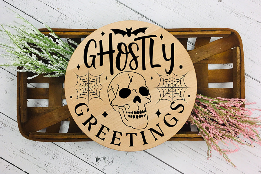 Ghostly Greetings SVG - Halloween Round Sign SVG