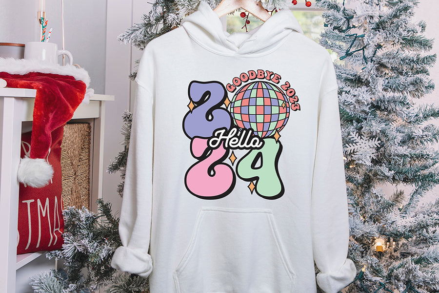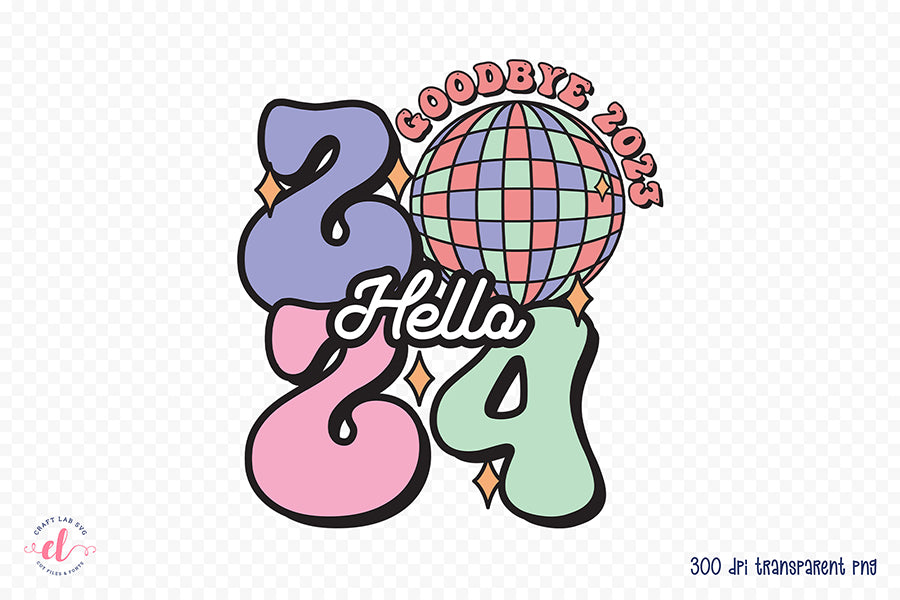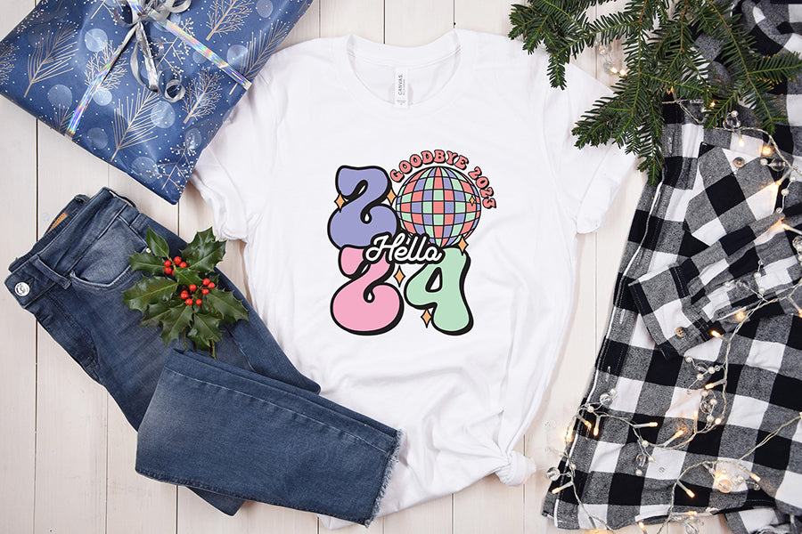 Create unique and festive new year’s eve crafts and project using this Goodbye 2023 Hello 2024 Sublimation Retro New Year T Shirt design. Perfect for making retro New Year projects. The design is ready for sublimation transfer to your t-shirts, mugs, hoodies, cards, tote bags, pillows, and much more!